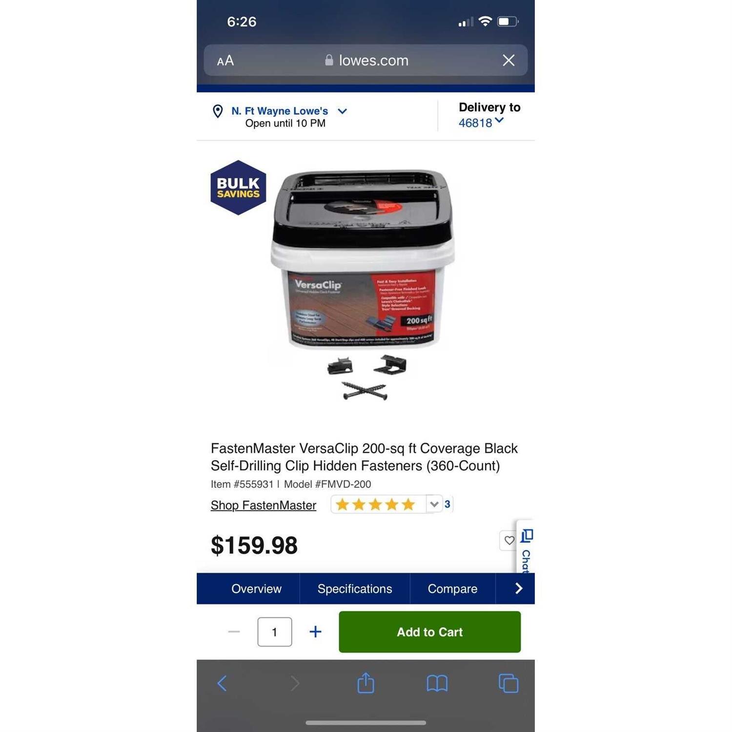 FastenMaster VersaClip 1-in Black Hidden Fastener 200-sq ft (360-Pack) Stainless Steel | FMVC-200