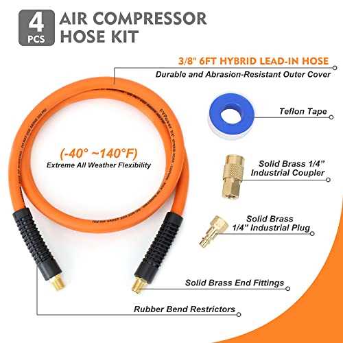 FYPower Air Compressor Hose Hybrid Hose with Fittings, Flexible and Kink Resistant