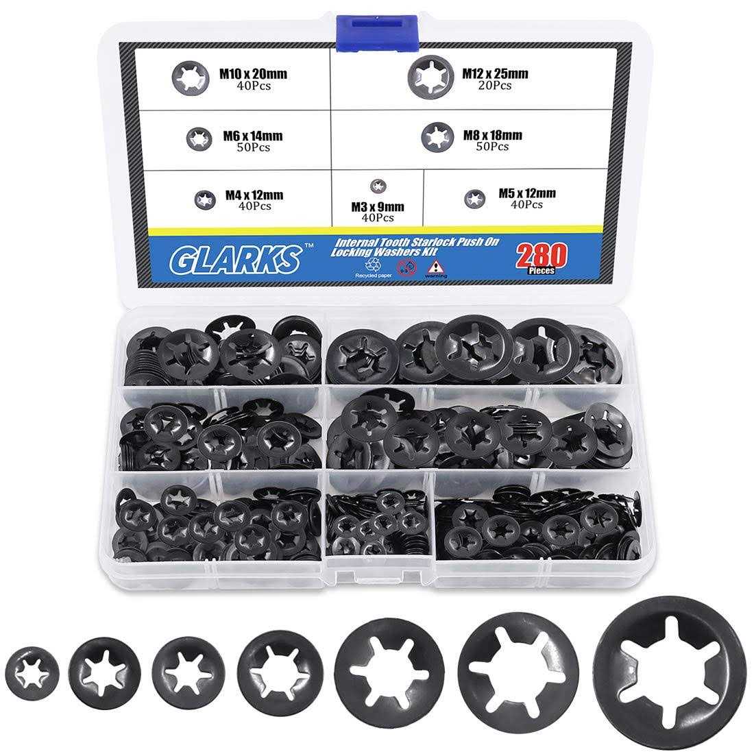 Glarks 280pcs Internal Tooth Starlock Push On Locking Washers Speed Clips Fasteners Assortment Kit
