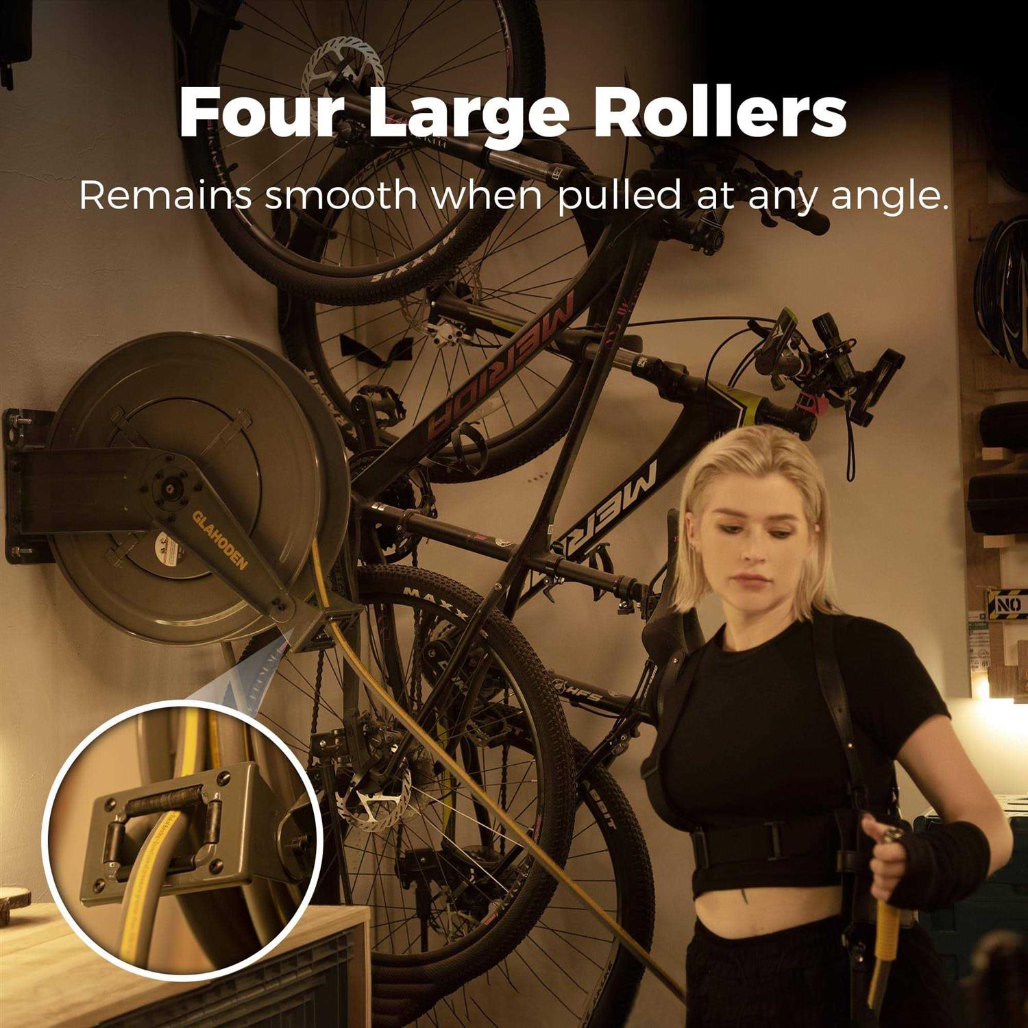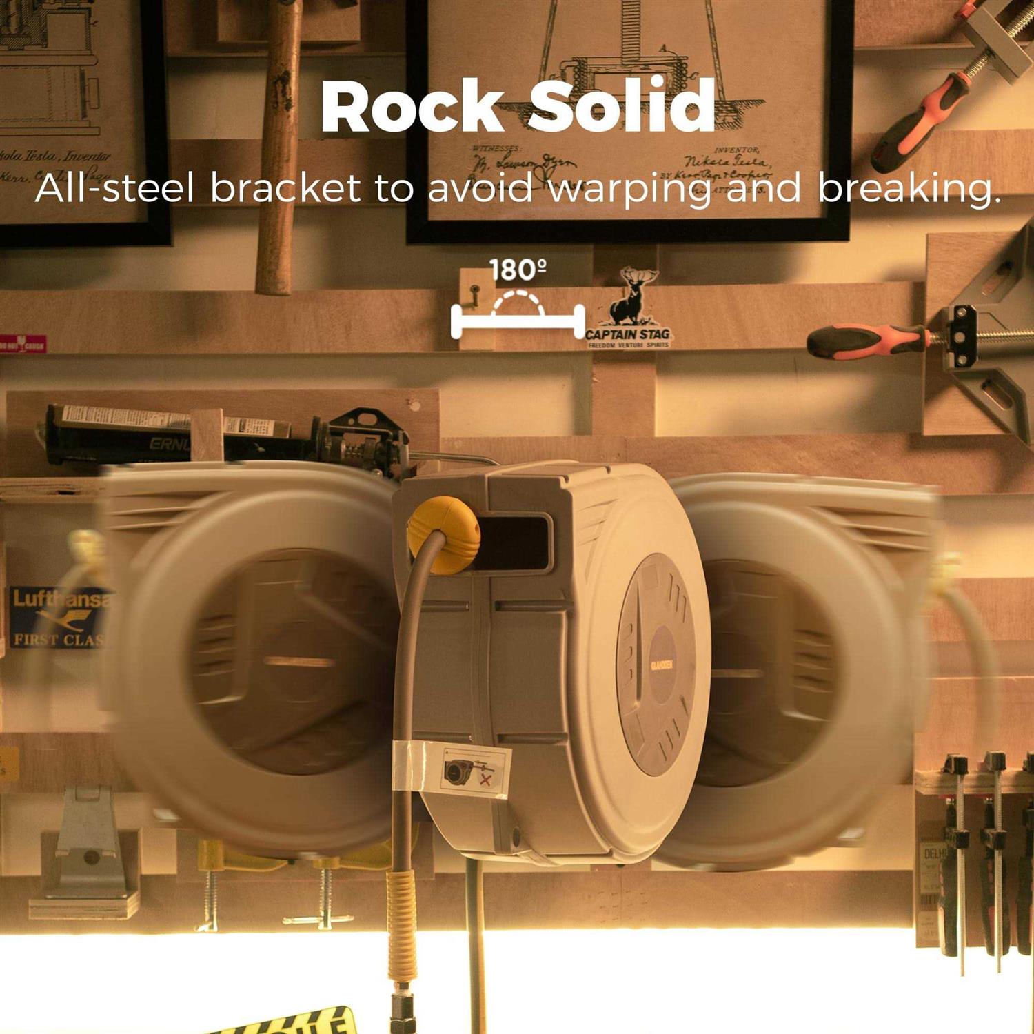 GLAHODEN Double Arm Air Hose Reel Retractable Hybrid Hose Heavy Duty Steel Professional Air Compressor Hose Reel with 5 ft Lead