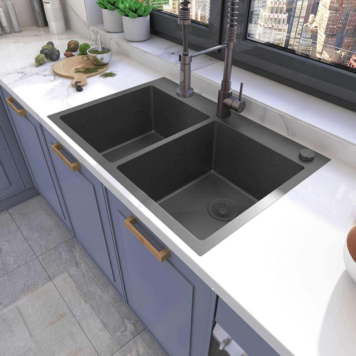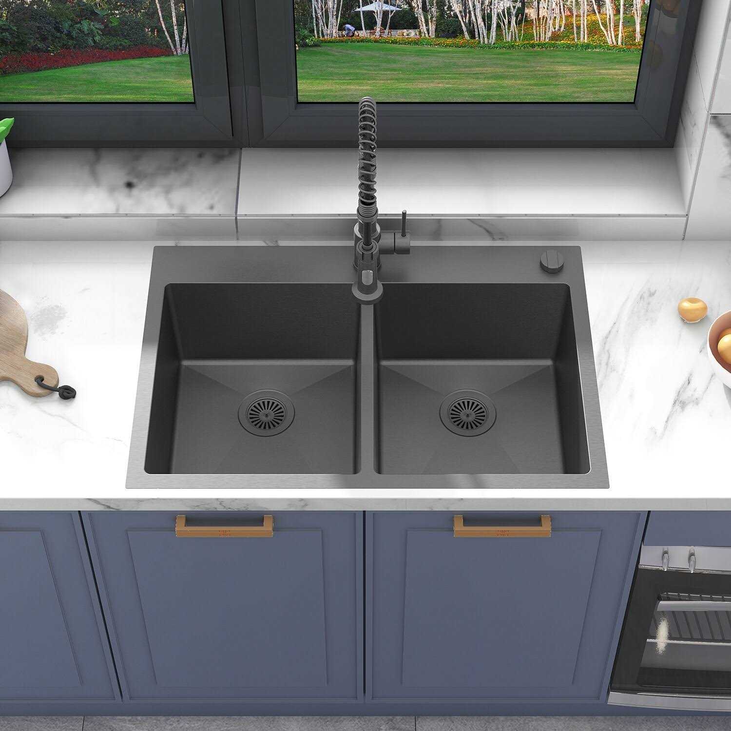 Sinber 33 in. Drop-in Double Bowl 18-Gauge Black 304 Stainless Steel Workstation Kitchen Sink