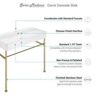 Swiss Madison Carre 36 Ceramic Console Sink White Basin Brushed Gold Legs