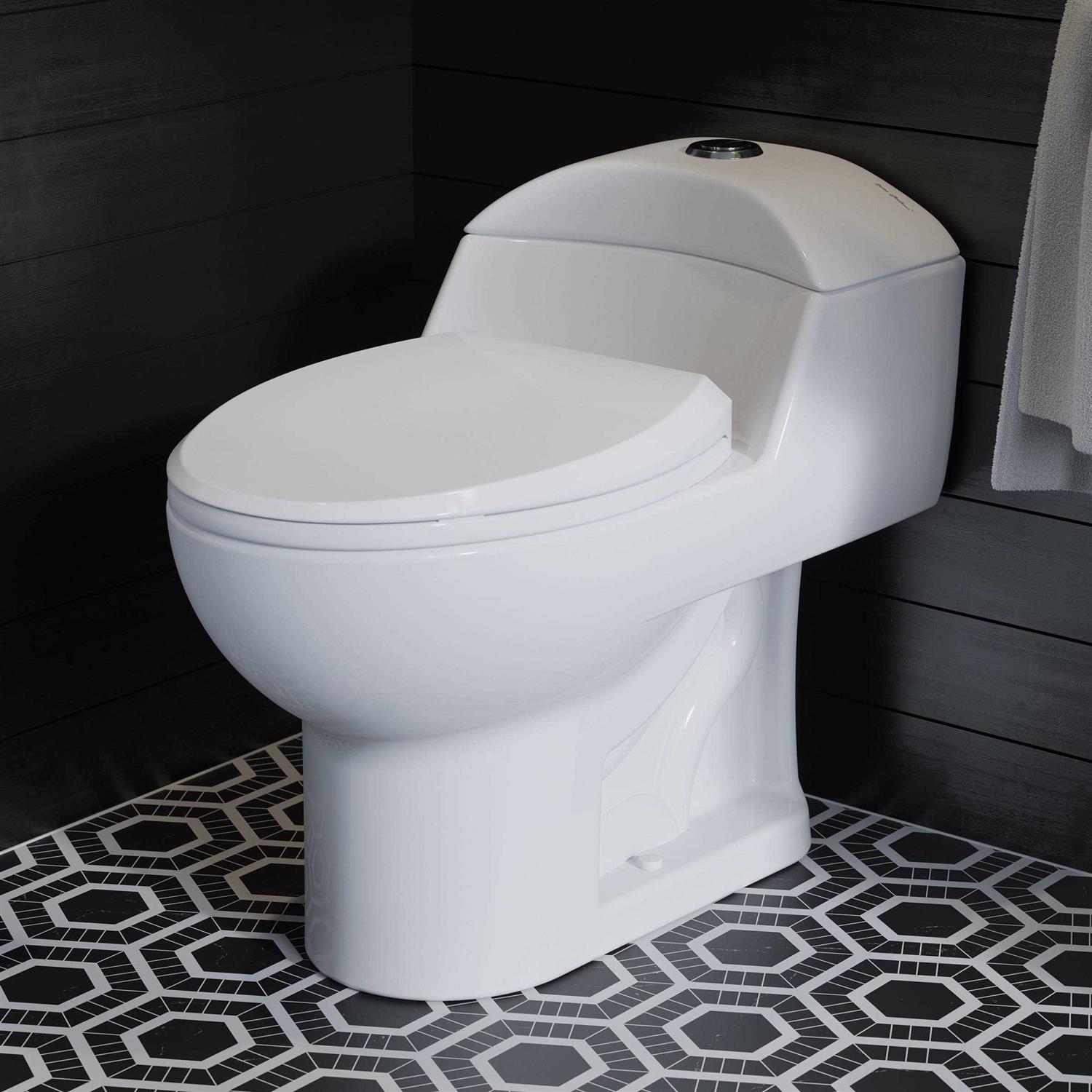 Swiss Madison SM-1T126 Daxton 1.6 GPF Dual Flush One Piece Elongated Toilet with Top Hand Lever – Seat Included Glossy White Toilets and Bidets