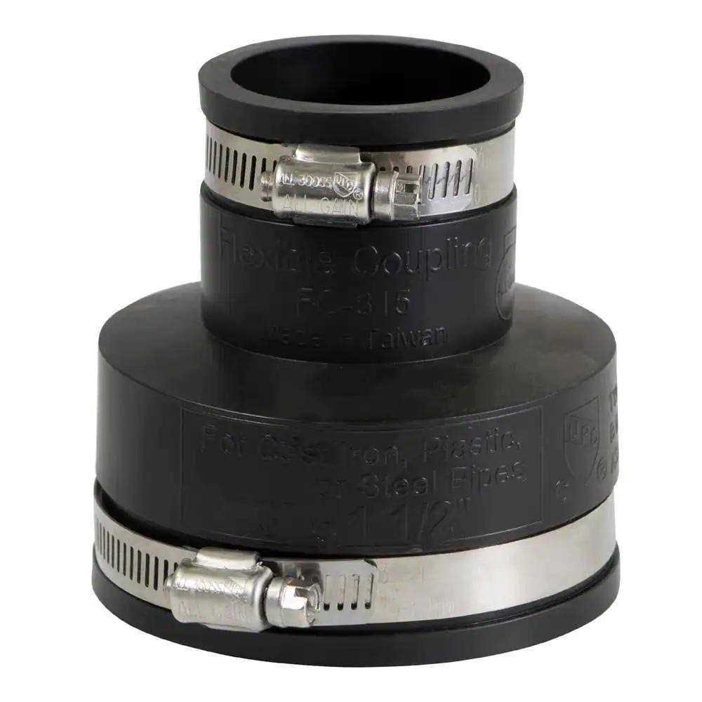 The Plumber’s Choice 3 in. x 1-1/2 in. PVC Flexible Reducing Coupling with Stainless Steel Clamps