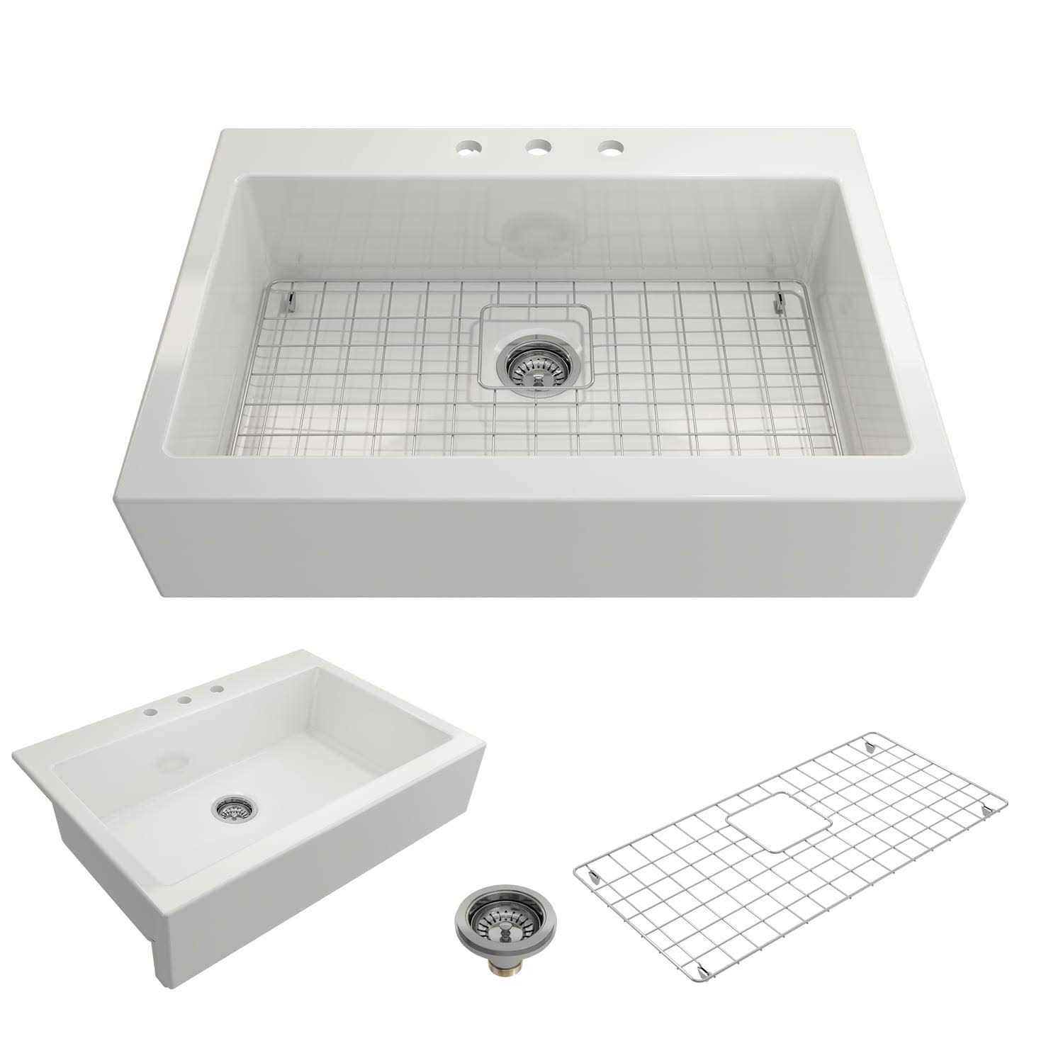 BOCCHI 1500-001-0127 Nuova Apron Drop-In Fireclay 34 Single Kitchen Sink