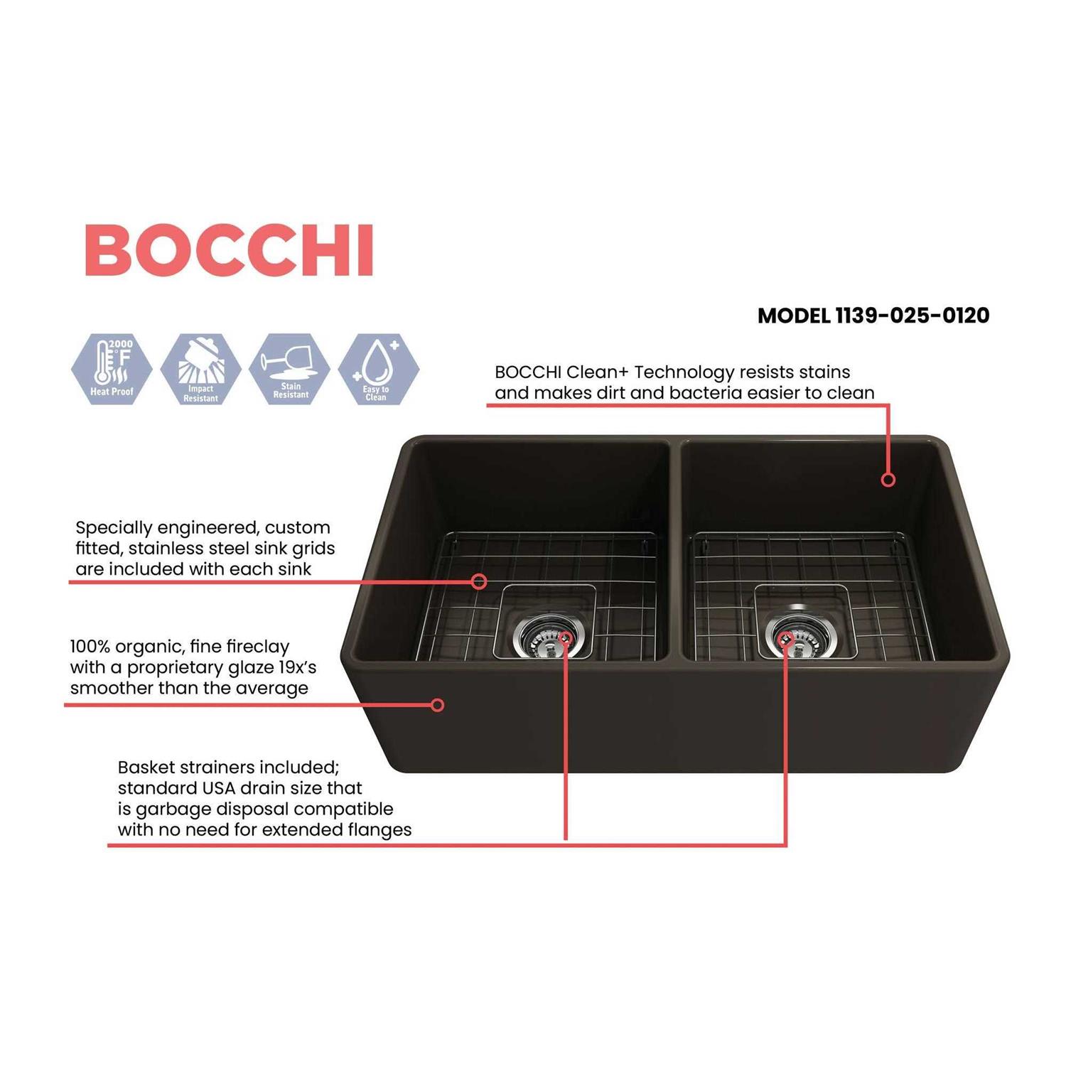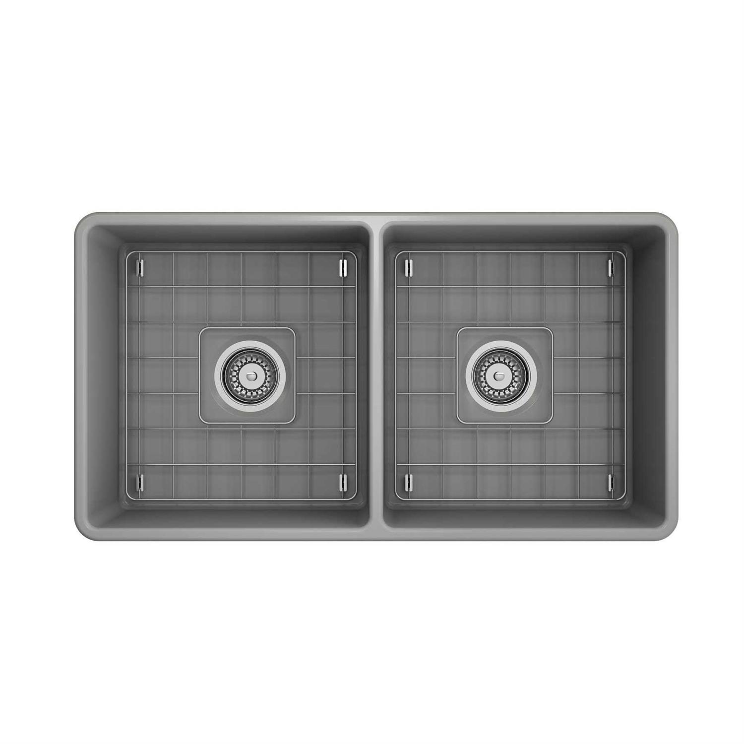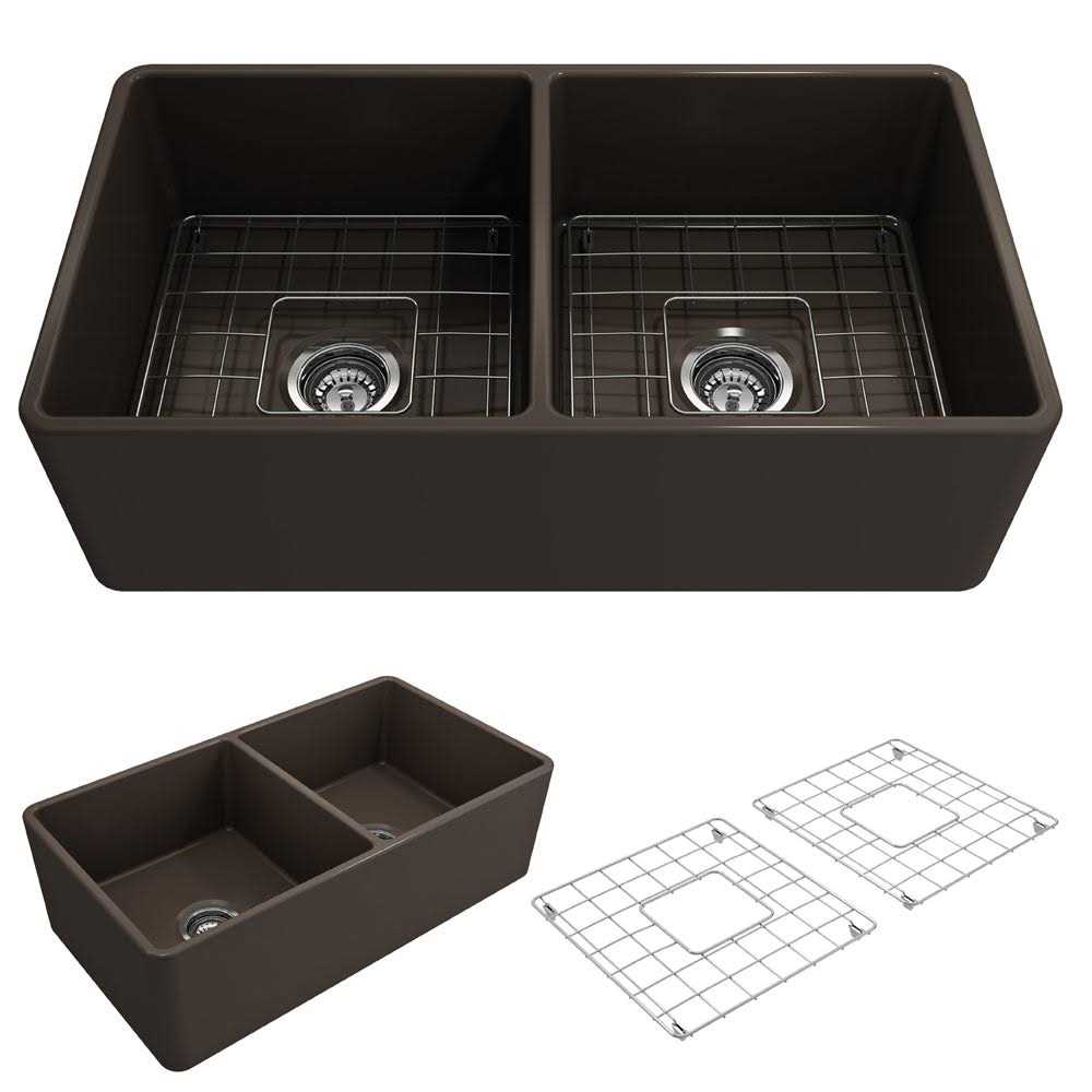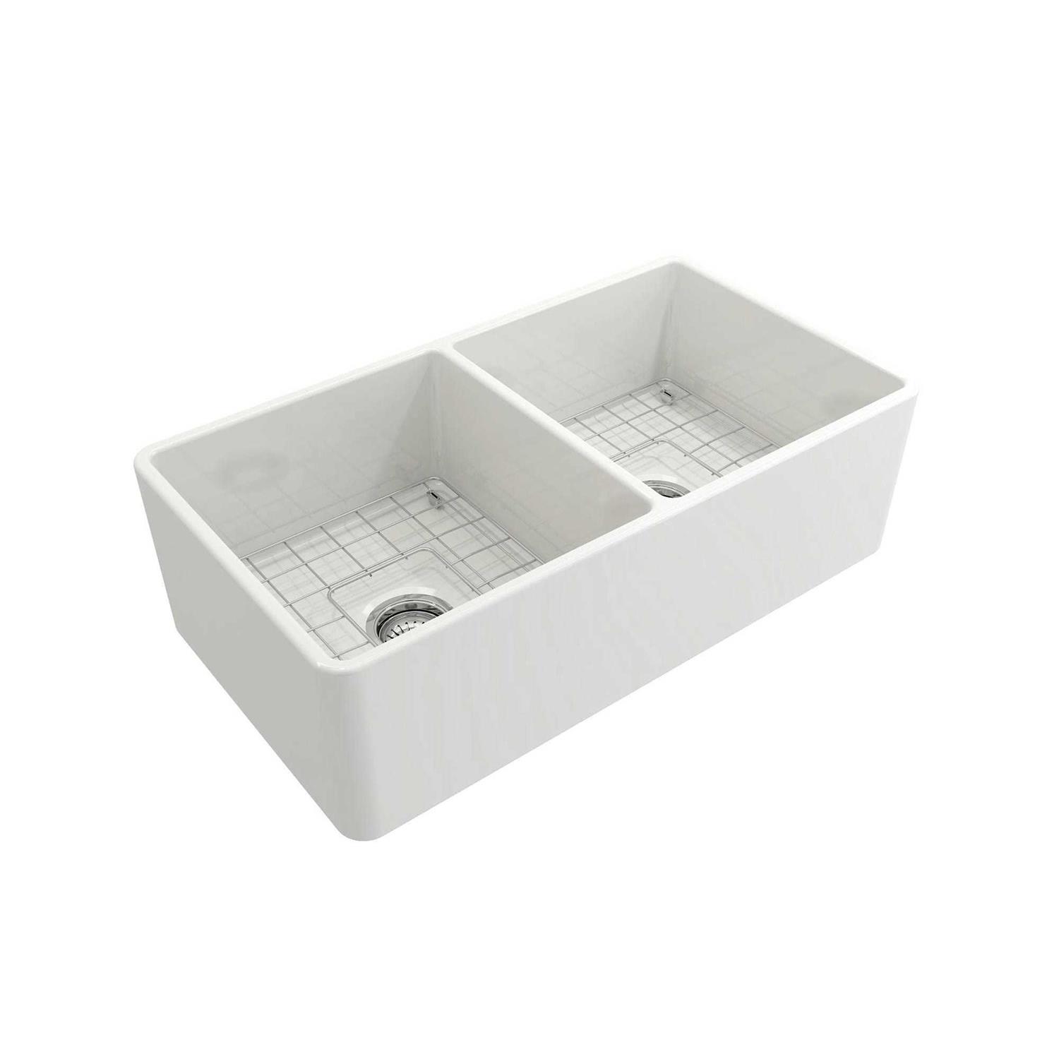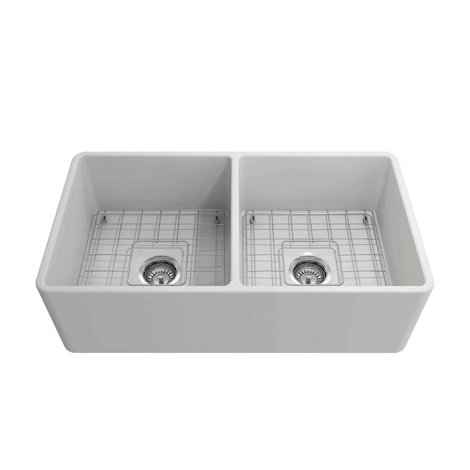 BOCCHI Classico Farmhouse Apron Front Fireclay 33 Double Bowl Kitchen Sink 1139