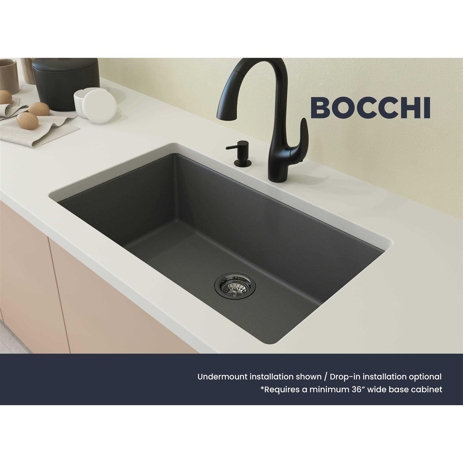 Bocchi Campino Uno 33 Single Bowl Dual Mount Granite Kitchen Sink with Strainer 1604