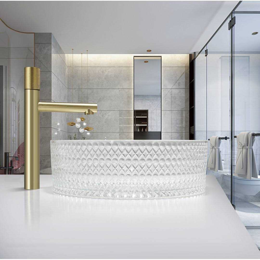 CastelloUSA Alrota 16 Clear Tempered Glass Circular Bathroom Vessel Sink CB-VC-13-CL-16