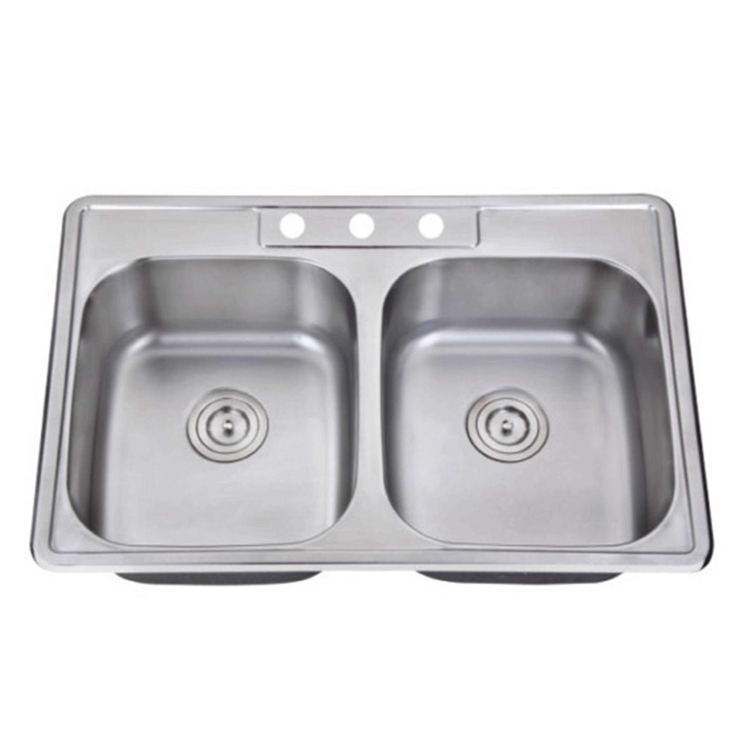 Cb Home 33 x 22 x 8 inch Pro Kitchen Sink Drop-In Topmount 50/50 Double Bowl 18 Gauge 304 Stainless Steel Sink with Noise Defend