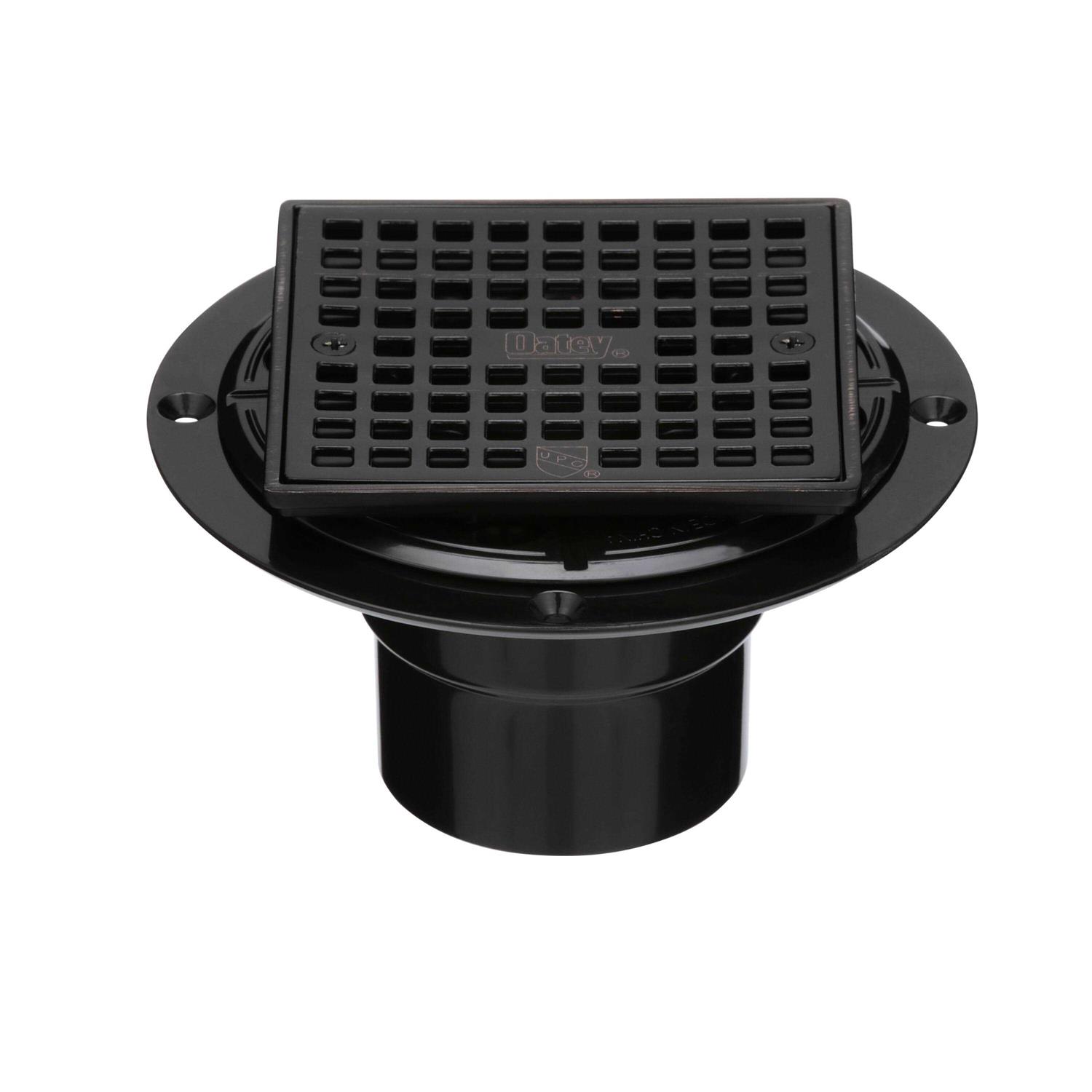 Oatey Round Black ABS Shower Drain with 4-3/16 in. Square Screw-in Oil Rubbed Bronze Drain Cover