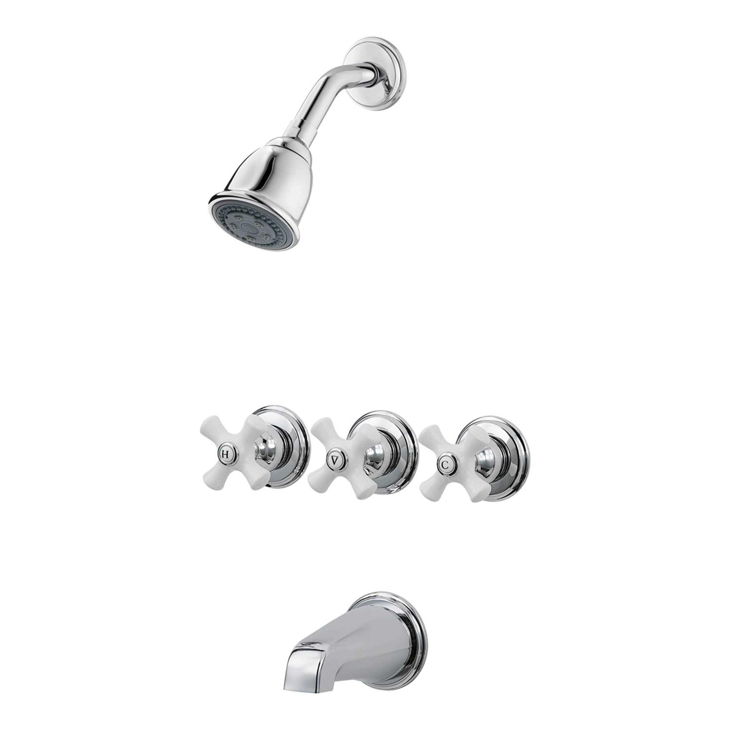 Pfister LG01-8CPC 3-Handle Tub & Shower Faucet with Porcelain Cross Handles Polished Chrome