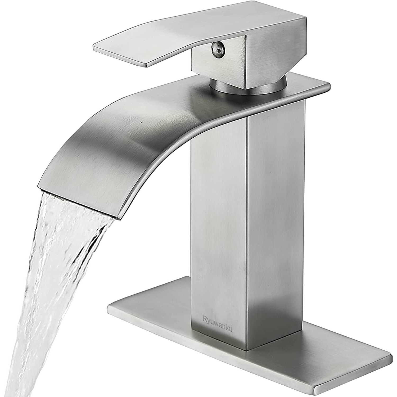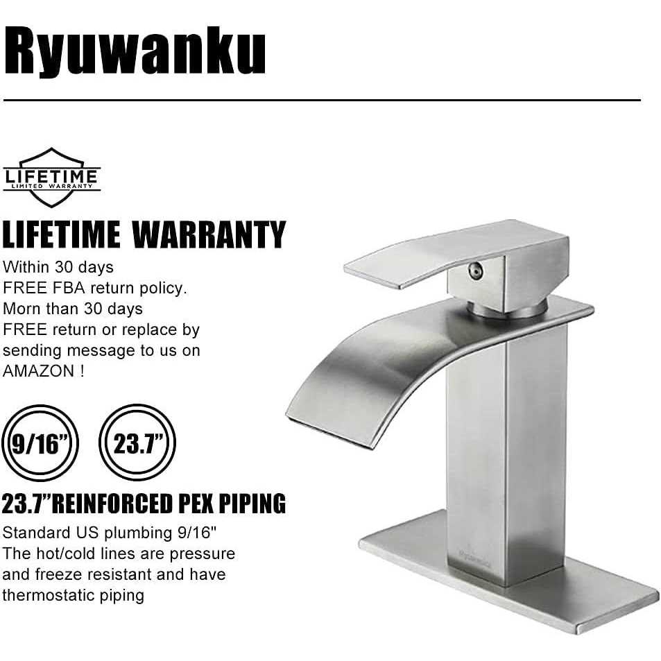 Ryuwanku Bathroom Faucet Brushed Nickel Modern Waterfall Bathroom Sink Faucet With Single Handle Suitable For 1 Or 3 Holes,Suppl