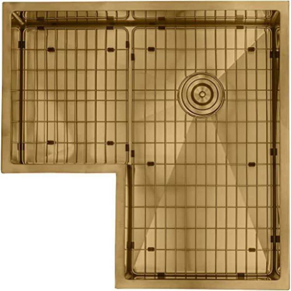 S STRICTLY KITCHEN + BATH Copper 16 Gauge Stainless Steel 30 in. Single Bowl Corner Undermount Workstation Kitchen Sink with Accessories