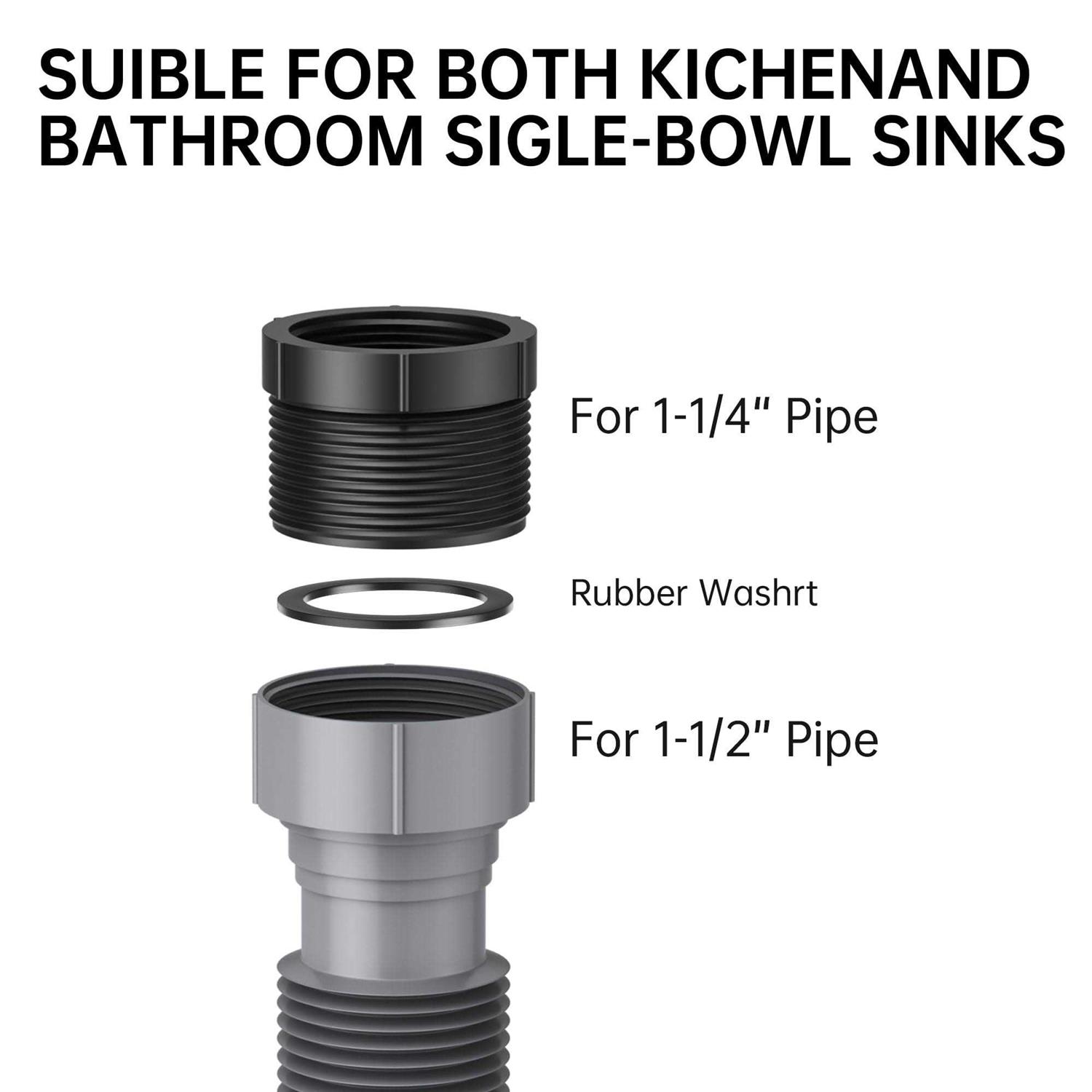 SAINT NIEVE Flexible Expandable P-Trap Kit for Double Kitchen Sink Drain Fits 1 1/2 or 1 1/4 Pipes-Complete with Sealing Ring, Tape, and Tubing