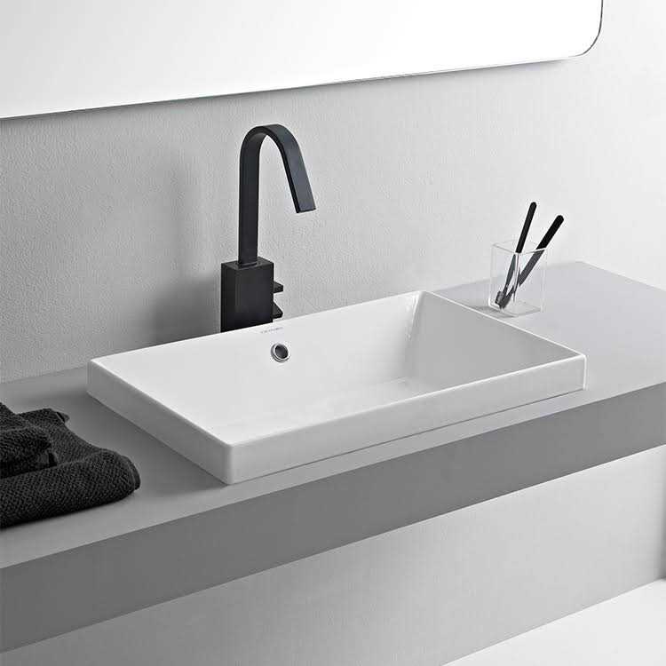 Scarabeo 8031/80-No Hole Teorema Rectangular Ceramic Vessel Sink