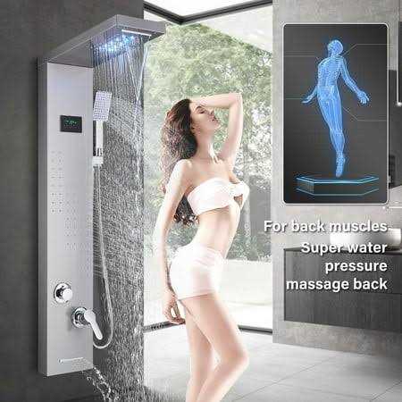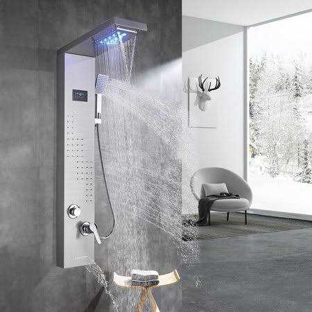 Senlesen LED Shower Panel Tower Massage Body Jet System Rain&Waterfall Stainless Steel