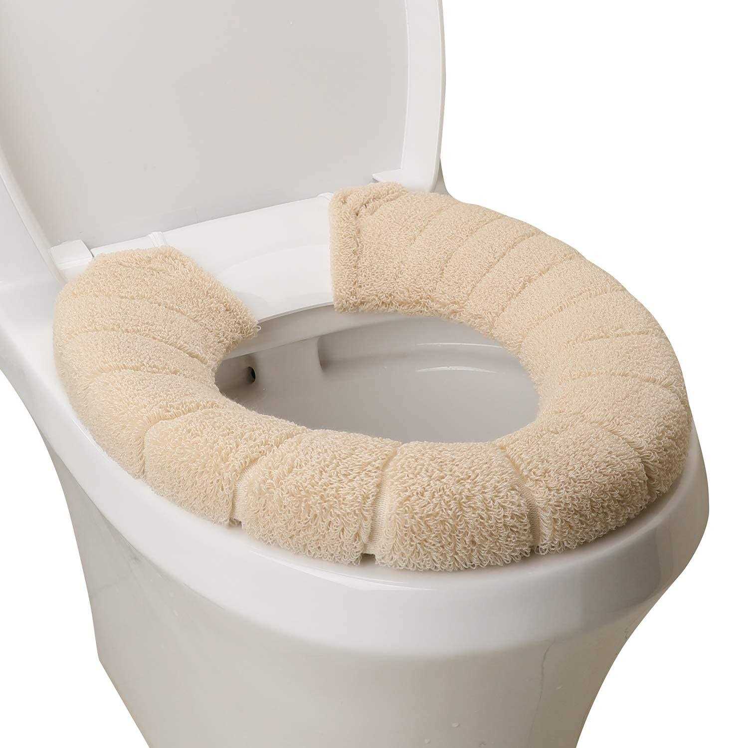 SENOMOR Toilet Seat Cover,Bathroom Soft Thicker Warmer with Snaps Fixed Stretchable Washable Fiber Cloth Toilet Seat Covers Pads Easy Installation& Cleaning