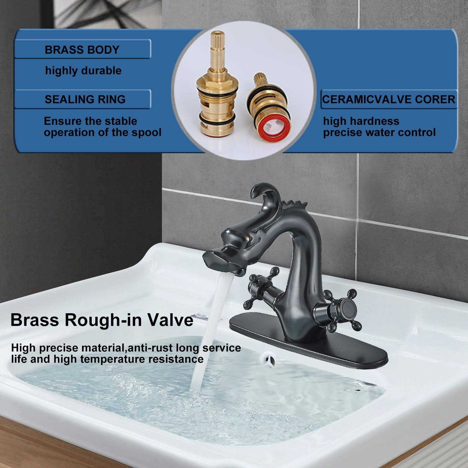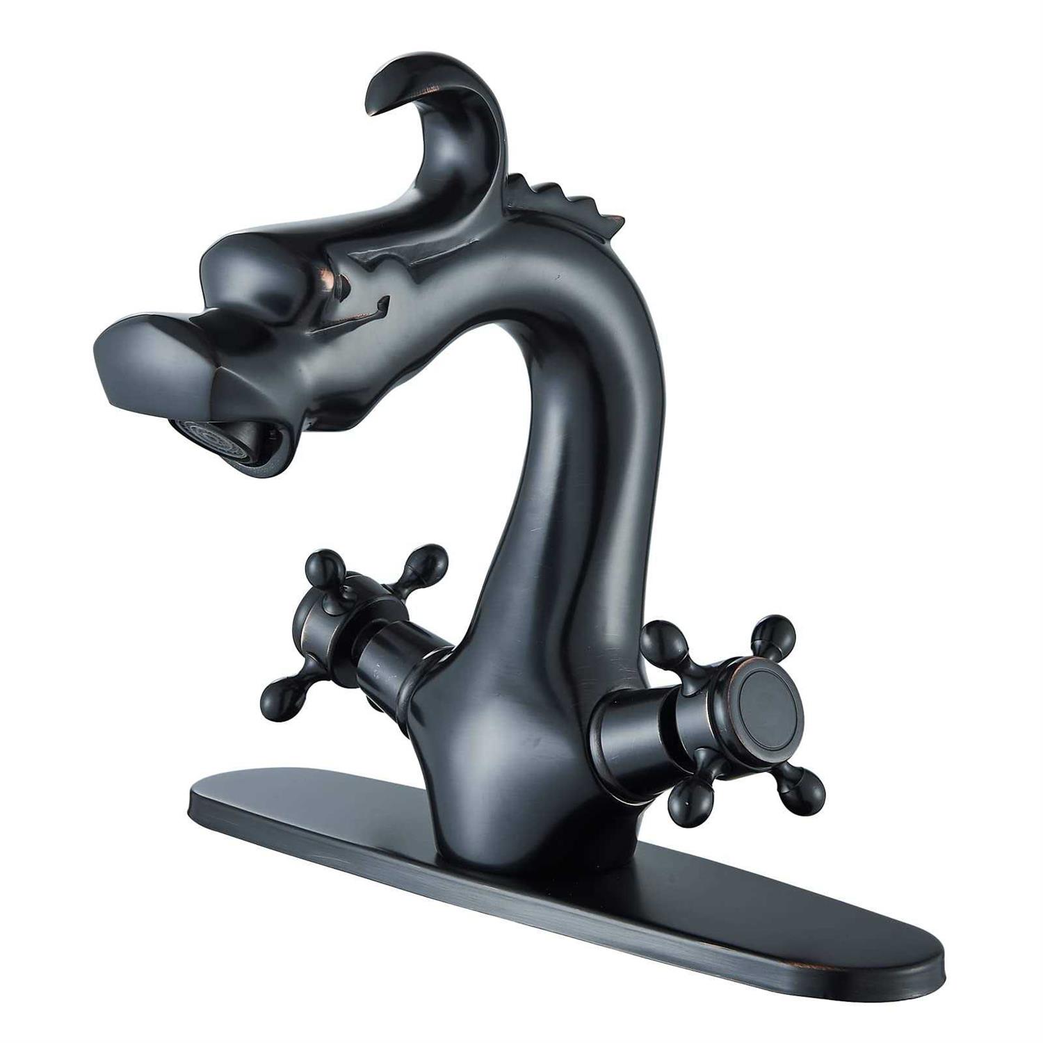 Senlesen Dragon Shape Oil Rubbed Bronze Two-Handle One Hole Bathroom Sink Mixer Tap Faucet Deck Mount Lavatory