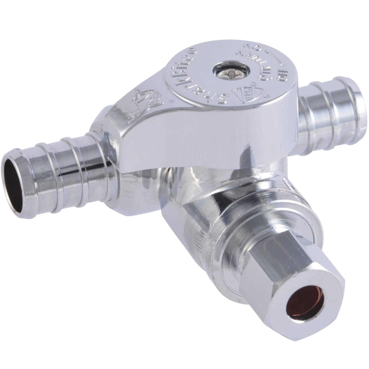 SharkBite Brass 1/2-in Pex Barb x 1/4-in OD Compression Quarter Turn Supply Stop Stainless Steel