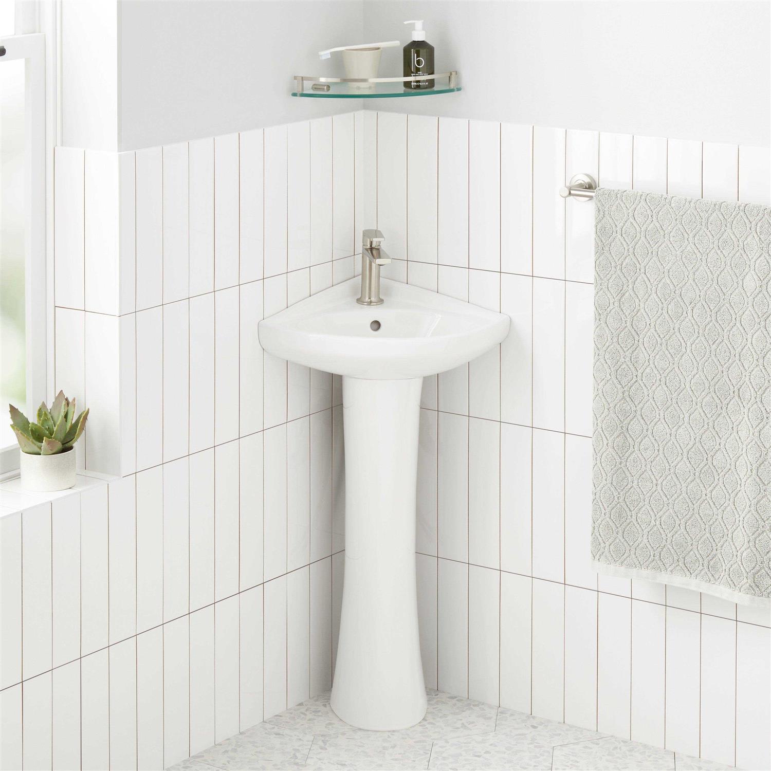 Signature Hardware 484430 Point Roberts 20 Vitreous China Pedestal Corner Bathroom Sink with Single Faucet Hole
