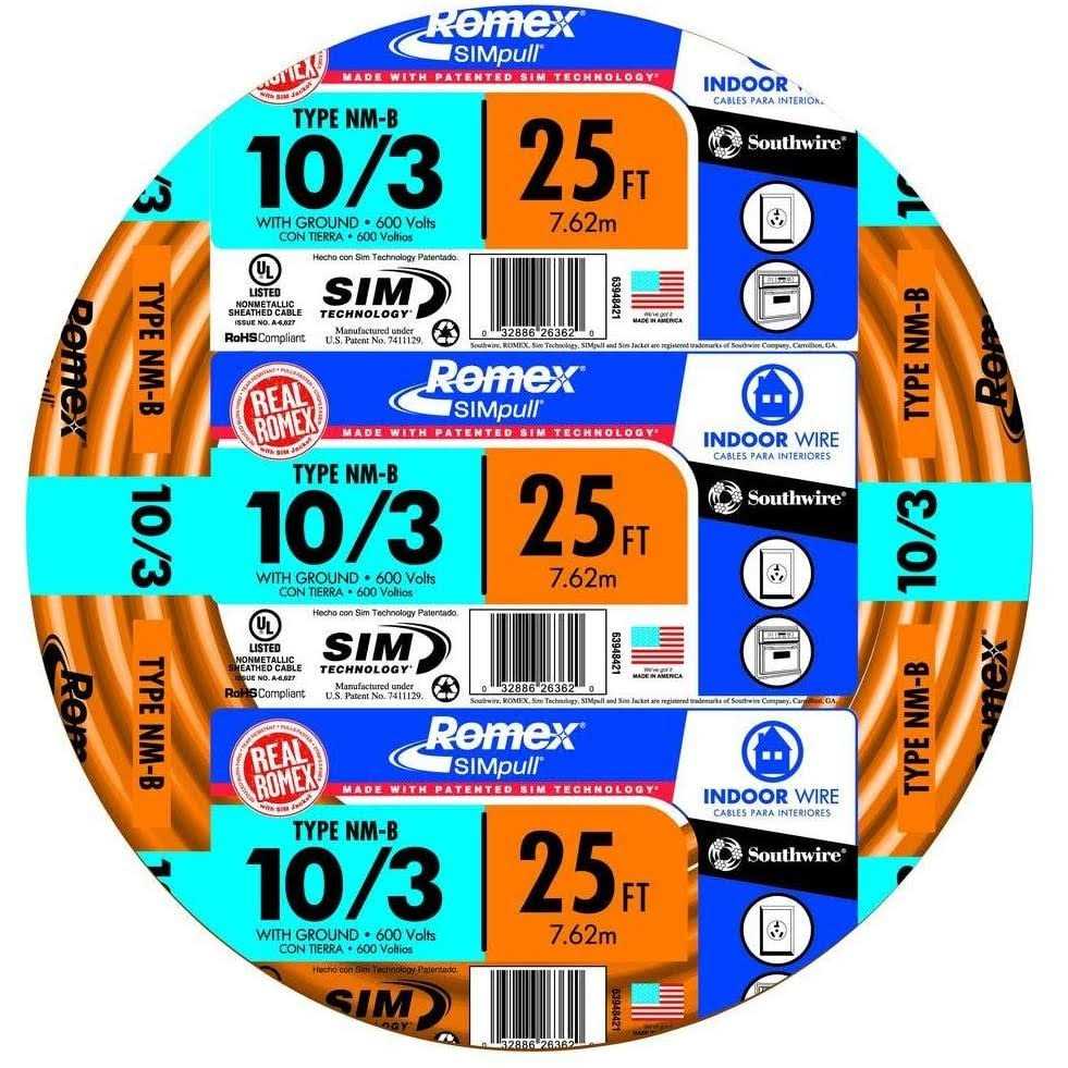 Southwire Romex SIMpull NM-B 10/3 Indoor Wire with Ground