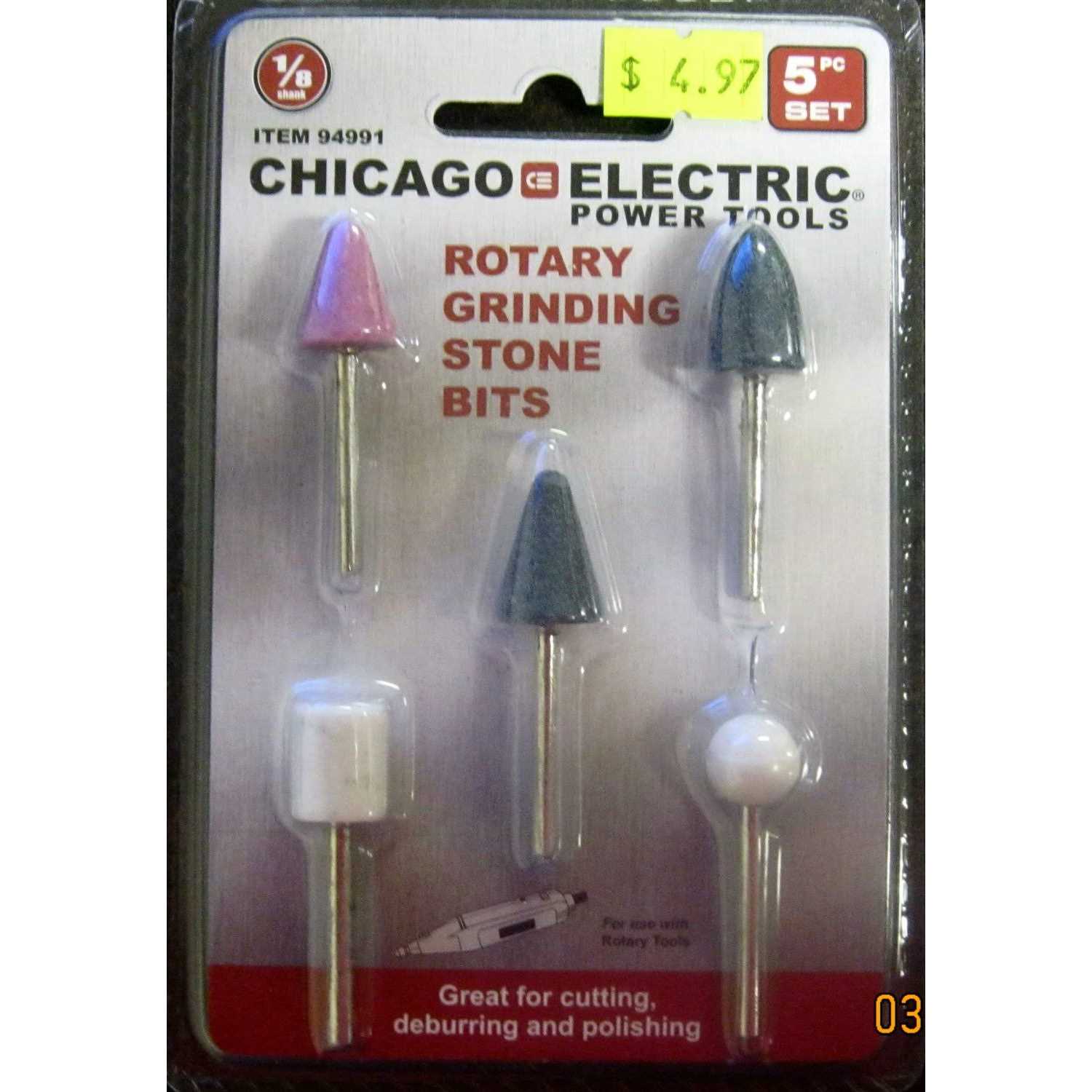 Chicago Pneumatic Stone Rotary Grinding Bits with 1/8 inch Shank 5 Piece