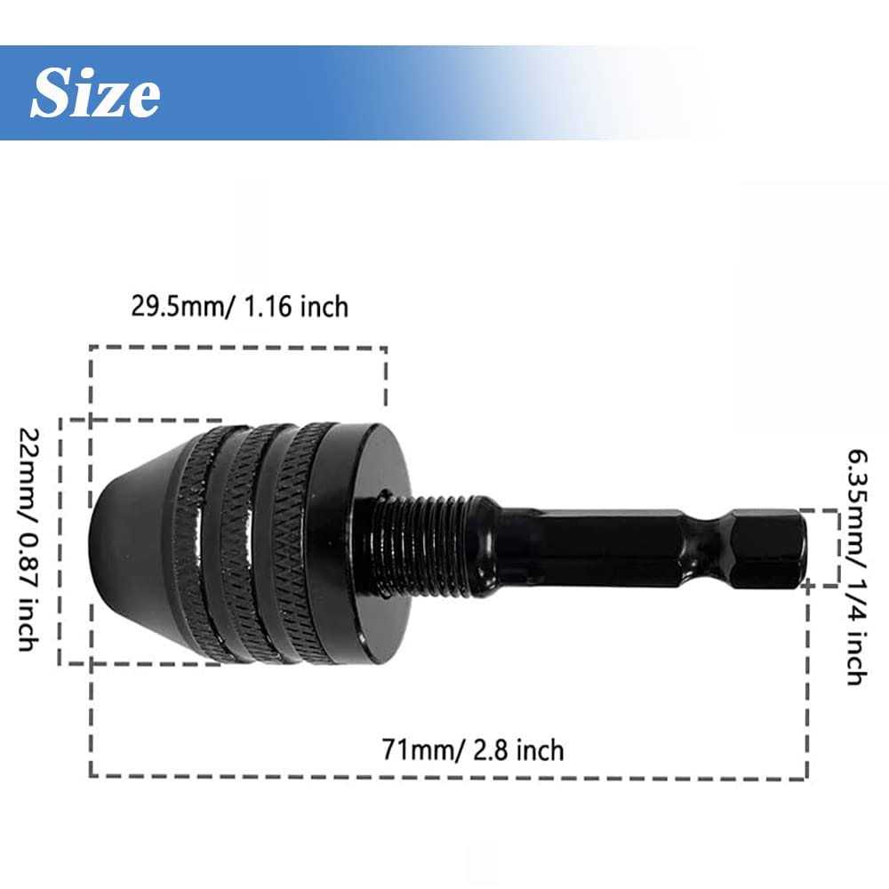 Eyech 0.3-6.5mm Keyless Drill Chuck Conversion Adapter with 1/4 Inch Hex Shank