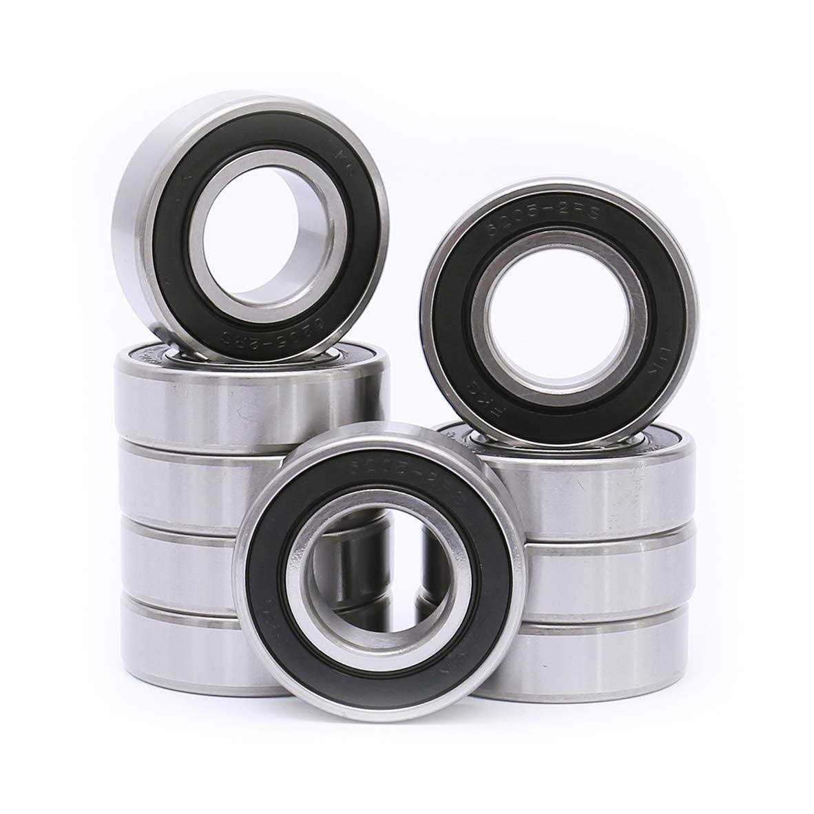 Fkg 6205-2RS 25x52x15mm Deep Groove Ball Bearing Double Rubber Seal Bearings Pre-Lubricated 10 Pcs