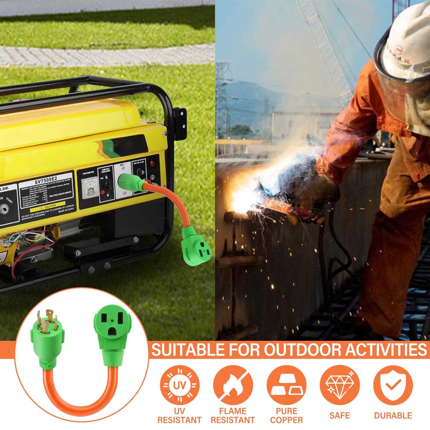 Flameweld Welder Adapter Cord NEMA L14-30P Twist Locking to 6-50R 4 Prong Generator to 3 Prong Welder Power Adapter Cord