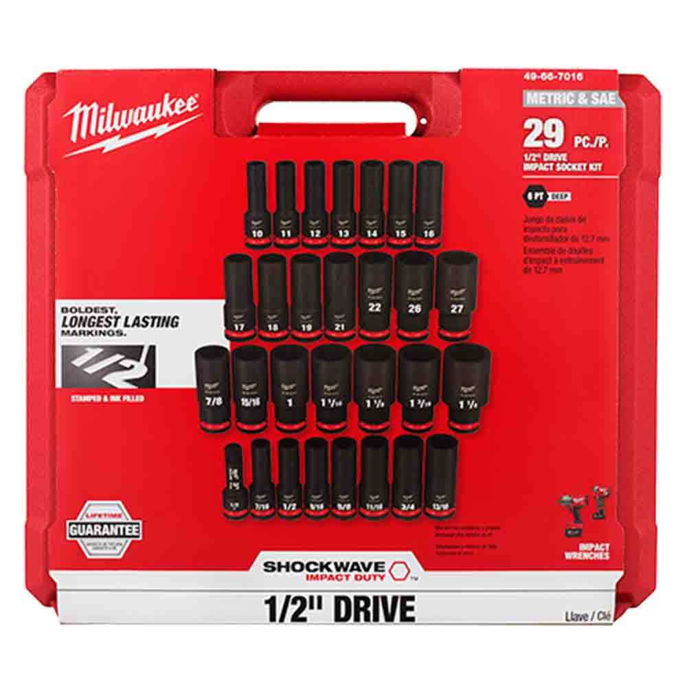 Milwaukee 49-66-7016 SHOCKWAVE Impact Duty 1/2 Drive SAE & Metric Deep 6 Point Socket Set