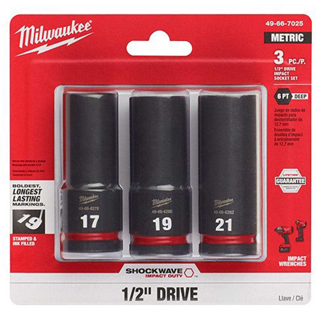 Milwaukee 49-66-7025 3PC SHOCKWAVE Impact Duty 1/2 Drive Metric Deep 6 Point Socket Set