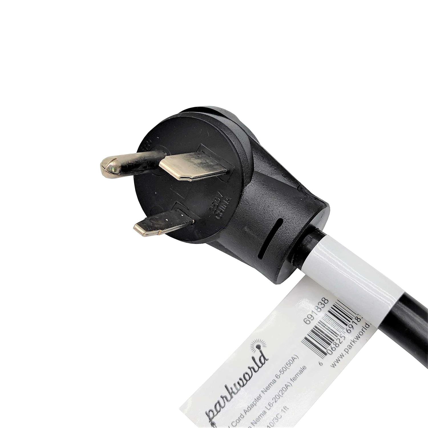 Parkworld 691838 Adapter Cord Welder 50 Amp 6-50p Male Right Angle to 20 Amp L6-20r Locking Connector Female