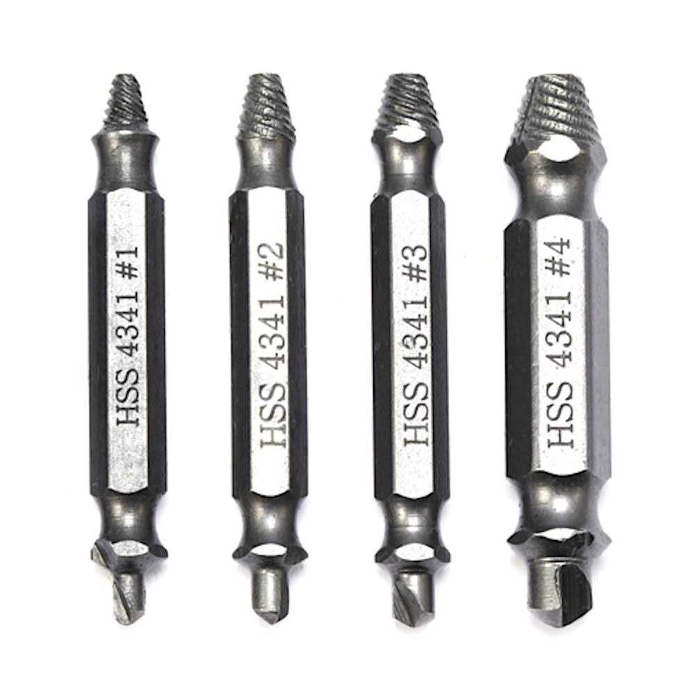 Screw Extractor Drill Bits 4pc Tool Set Broken Stripped Damaged Bolt Remover