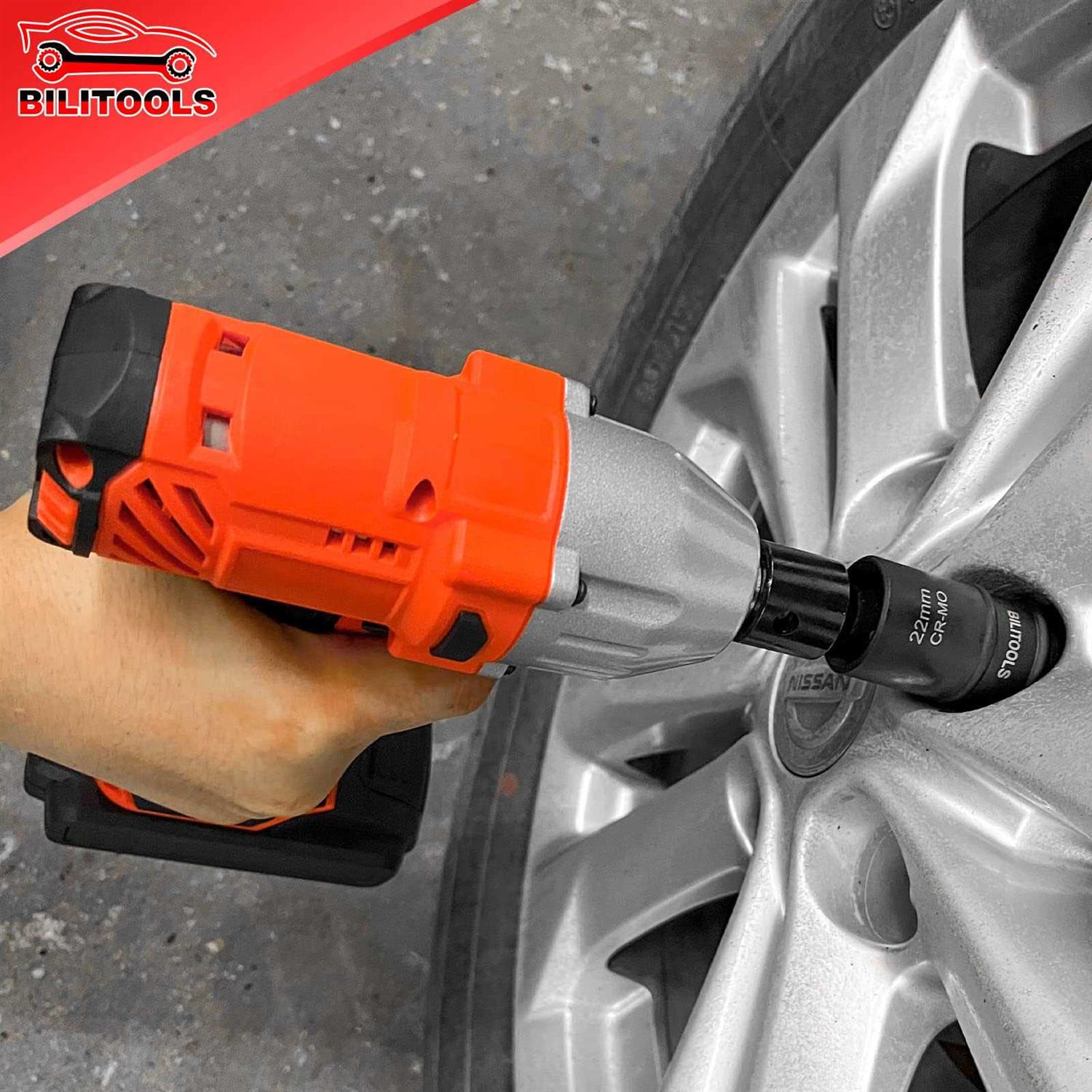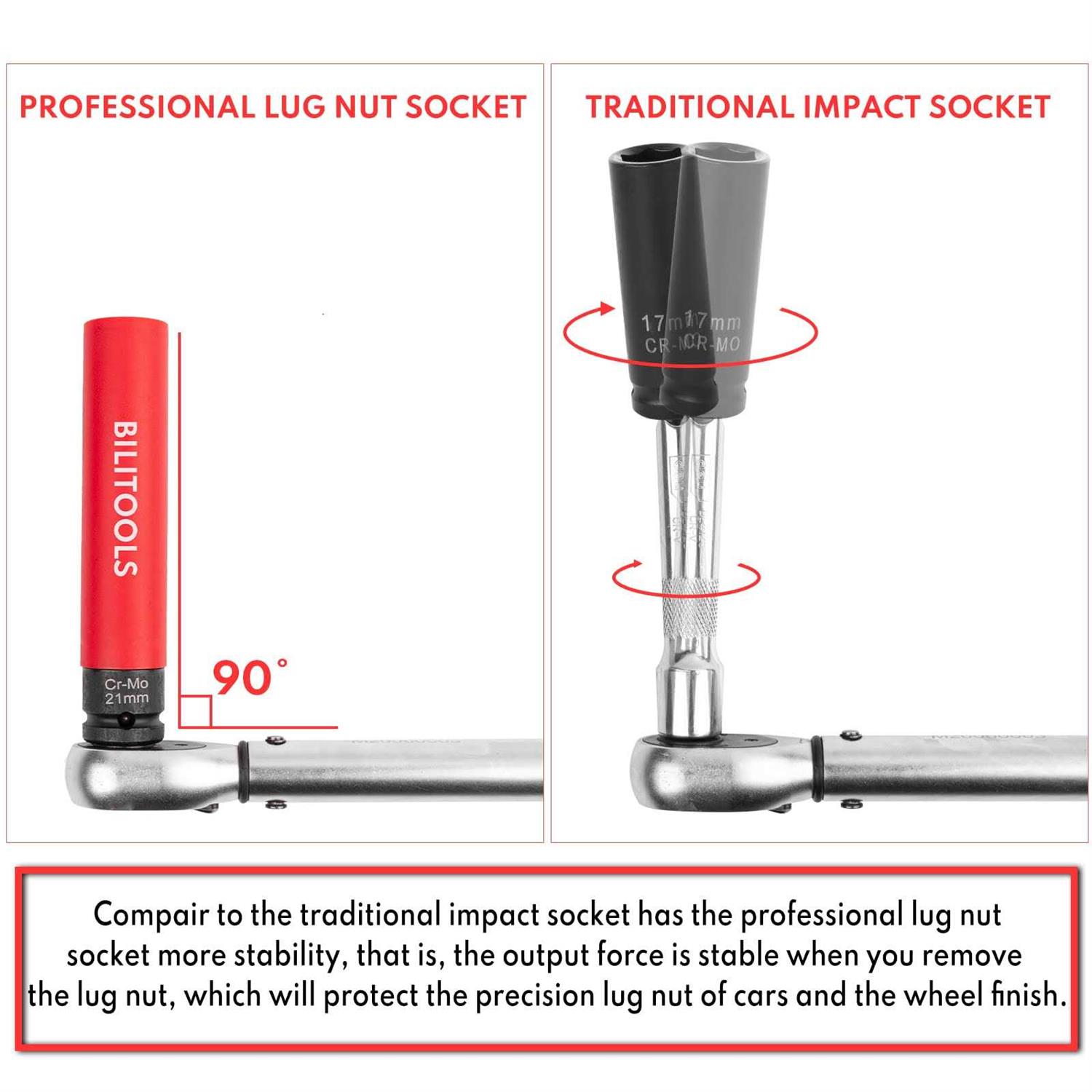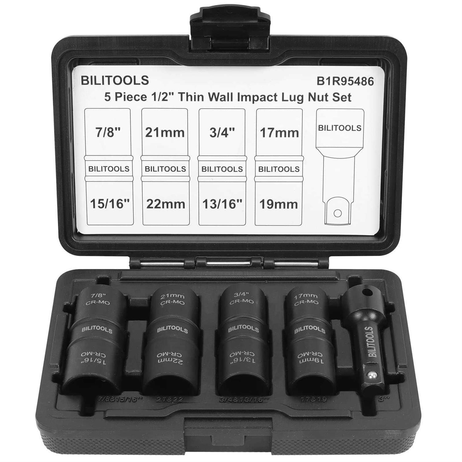 BILITOOLS 1/2 inch Drive Impact Lug Nut Socket Set 15 17 19 21 22 mm Non-Marring Thin Wall Wheel Protector Nut Socket