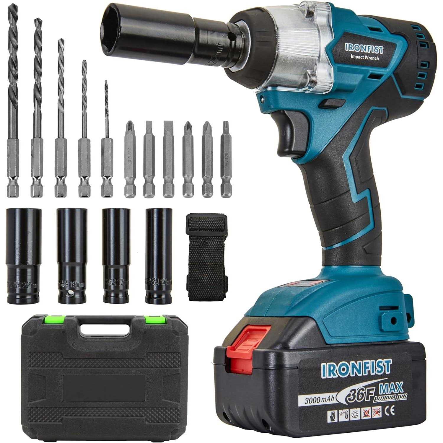 Ironfist Cordless Impact Wrench Electric Power Impact Screwdriver with 21V Lithium Battery Brushless Motor with 420nm Torque