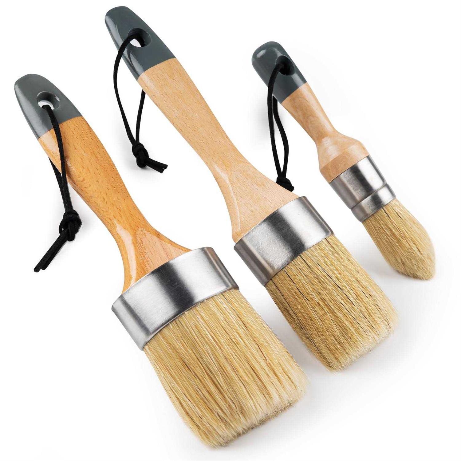 Mister Rui Chalk Paint Brush, Wax Paint Brush Set 3 Pack, Round Paint Brushes Use with All Paints, Natural Bristle Brushes for Painting or Waxing