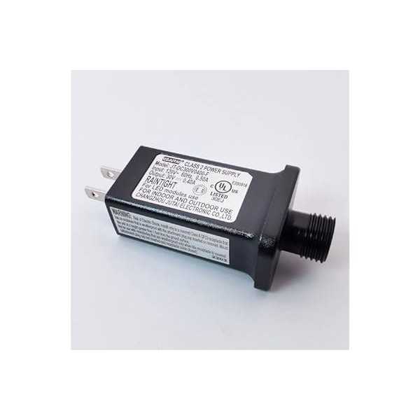 Model Name:JT-DC300V0200-C Input: 120V, 60HZ, Output: 30V, 0.2A, 6 Watts. This 30V plug only with steady on mode, it is only fit for steady on led light, if you use it for flash led light, it can’t work well. This adaptor only fits for 30V low voltage led device with current under 6 watts, such as 30V 6W Christmas String Lights, Copper Wire Light, if you use it for a 12V, 5V output led device, it can’t work, if you use it for a 12 watts, 24 watts output led device, it can’t work. Please carefully read the volts, currents, watts and the +/- prong connector if it compatible with your led device before order it.