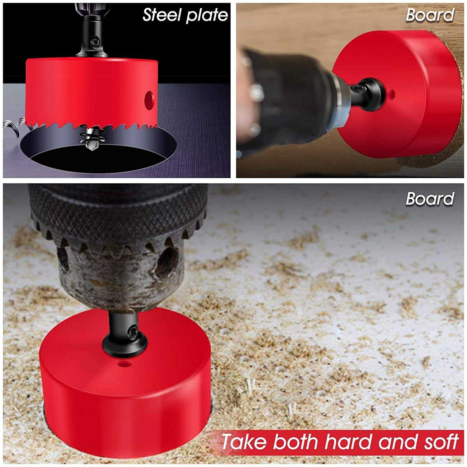 6-1/8 Inches HSS Bi-Metal Hole Saw, Red Finished Corn Hole Cutter 155 mm for Wood Boards, Soft Metal Sheet and Plastic