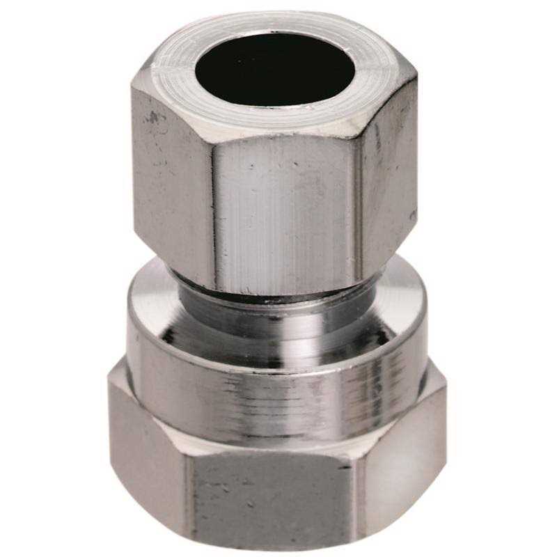 End 1 Diameter: 3/8″. End 2 Diameter: 3/8″. End 1 Type: FPT. End 2 Type: Compression. Material: Brass. Product Type: Straight Connector. Color Family: Silver. Fitting or Connector Type: Adapter. Number in Package: 1 pk . Packaging Type: Carded.