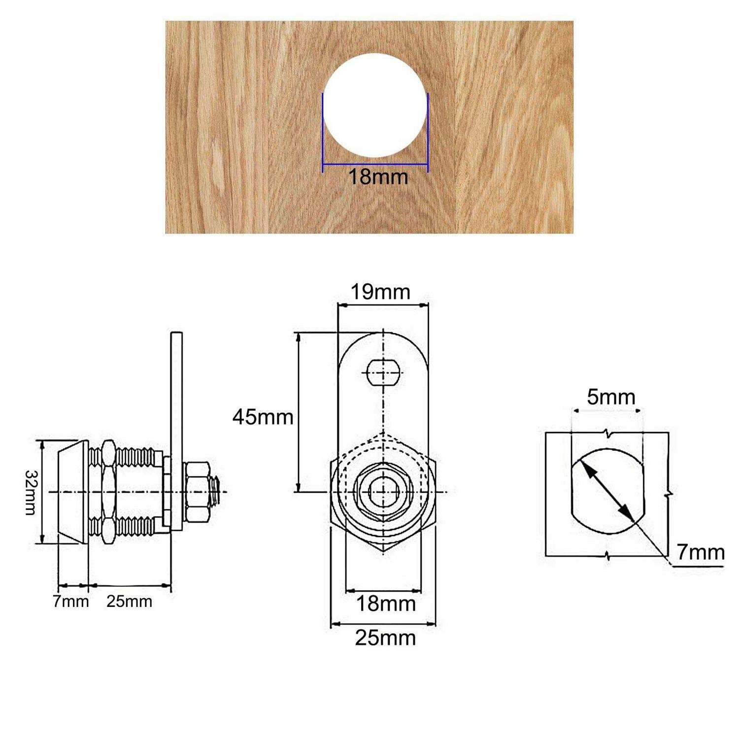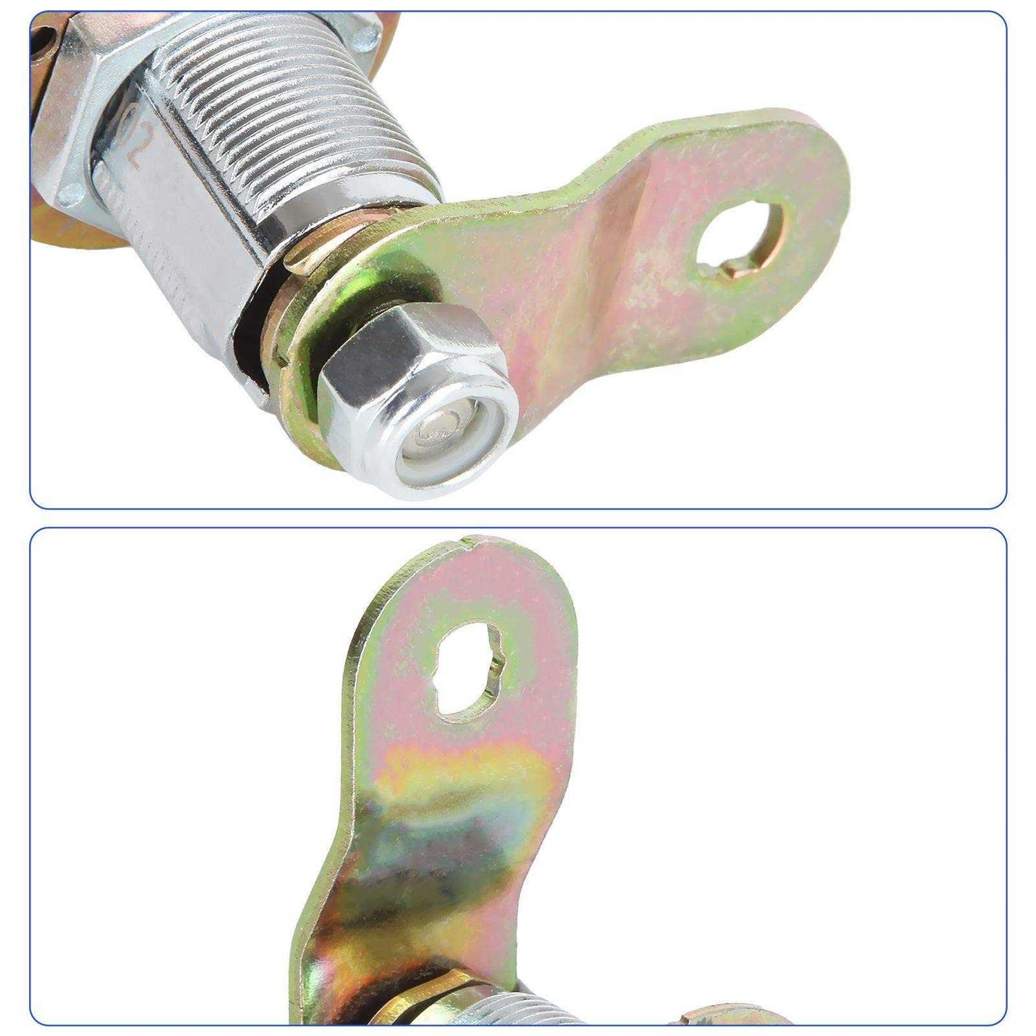 MATERIALS: Cam lock latch is made of zinc alloy chrome finish, sturdy and durable, and wear for long-term use. SIZE: The length of the 90° cam lock is 1 1/8″long and 3/4″ diameter, lock plate length 50mm, thickness 2mm, fit a material thickness of up to 7/8″. (See diagram for a more detailed picture). ALIKE KEYS: All drawer cam lock in the order will be keyed the same, 12 lock comes with 5 keys; Key can only be removed in the locked position. APPLICATIONS: Safety cam lock is widely used for desk drawers, cabinets, tabletop showcases, mailbox, collections boxes, camper or RV doors, perfect for keeping your small items safe. YOU WILL GET: 12 pcs file cabinet replacement locks and 5 pcs keys; Check measurements in photo to ensure the lock is correct lock for your needs. AConnet RV tubular cam lock keyed alikeis easy to install in metal, wooden door, cabinet, enclosure etc. Made of Zinc Alloy, Chrome-plated, durable and safety for your items. Key can only be removed in the locked position. The tubular cam lock is keyed alike. Easy to instal: 1. Drill a 3/4 key hole. 2. Put on the lock body. 3. Install the spur washwer, twist the hex nut to fix the lock. 4. Adjust the position of the latch. Specifications: Material: Zinc Alloy Rotation Angle: 90 degree For Door Thickness: Up to 7/8 inch Mounting Hole Dia.:3/4 inch Max. Latching Distance: 1-1/8 inch Cylinder: Length: 1-1/8 inch (28mm) Diameter: 5/8 inch () Lock Plate: Length: 2 inch (50mm) Width: 3/5 inch (18mm) Package Included: 12 x RV Door Cam locks
