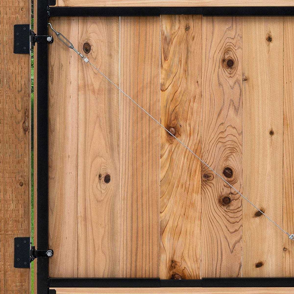 Adjust-A-Gate Steel Frame Gate Building Kit. Whether you are replacing a worn-out gate or installing a new gate, the job will be made easy with our all steel adjustable gate frame system. Repair an old sagging existing gate. This gate brace frame kit is built with contractor grade steel, rust-resistant coating for durability. Includes an adjustable steel frame, lockable two-way gate latch, post hinges and gate hinges, patented truss cable system. Just add wood or composite to match your fence. Built on-site to fit your gate opening perfectly. Works for wood or composite fencing, 2 rail or privacy fence. This is the perfect gate building kit for homeowners and contractors alike.