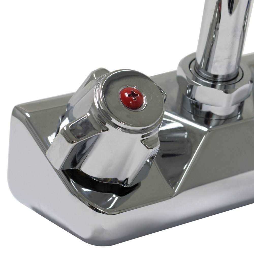 The Manual Faucets by Advance Tabco: Special Value Faucet, 4 O.C, splash mounted with 3-1/2 gooseneck spout, lead free ( Advance Tabco – K-59-EC ) – This Advance Tabco K-59-EC faucet comes in a splash-mounted design, providing a great amount of space between the faucet and sink bowl for a much larger capacity. This economy faucet is great for easy accessibility due to its canopy-style handles. Its handles have colored indexes so users know which side is hot water and which side is cold water. With a tall spout and swivel gooseneck design, this faucet mounts on 4-inch centers. Product Details. Canopy-style handles with colored cold and hot indexes. 31/2-in. swivel gooseneck spout. Chrome-plated brass body and spout. 1.0 GPM/3.8 LPM aerator. 4-in. centers. 60 PSI. Overall dimensions: 43/4 in. D x 91/2 in. H.