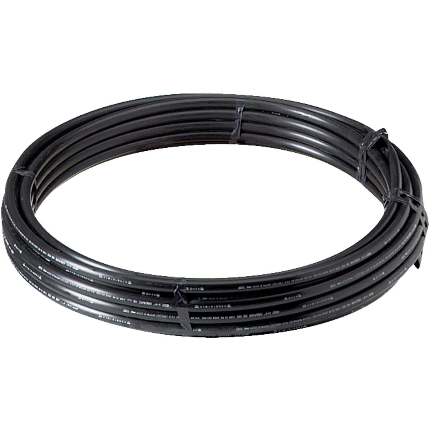 Long, continuous lengths in coils as indicated below. Conforms to performance specifications for appropriate working pressures. Approved by National Sanitation Foundation for drinking water use. Made of black virgin polyethylene.