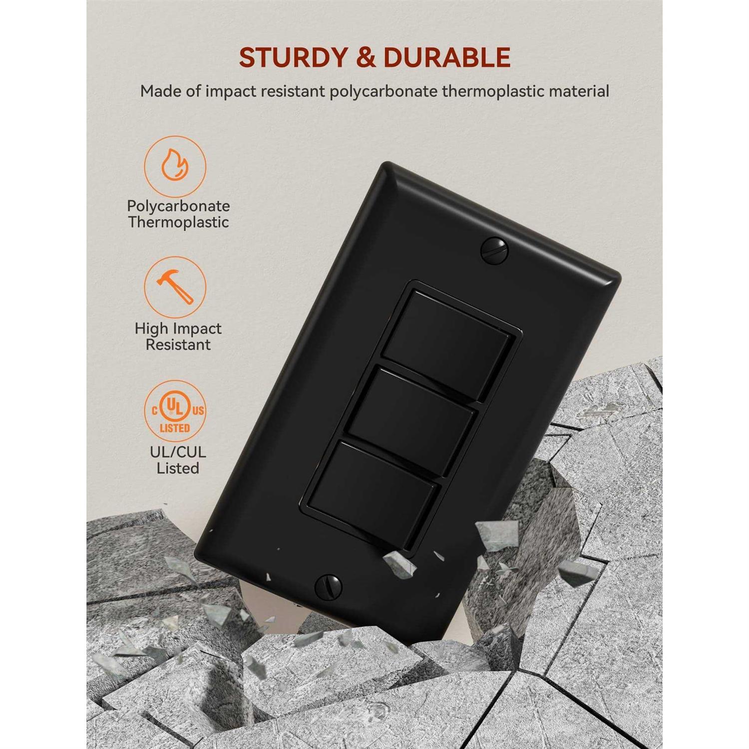 - 【Universal Application】Wall switch suitable for residential use and most commercial areas that require only 15Amp switches.
