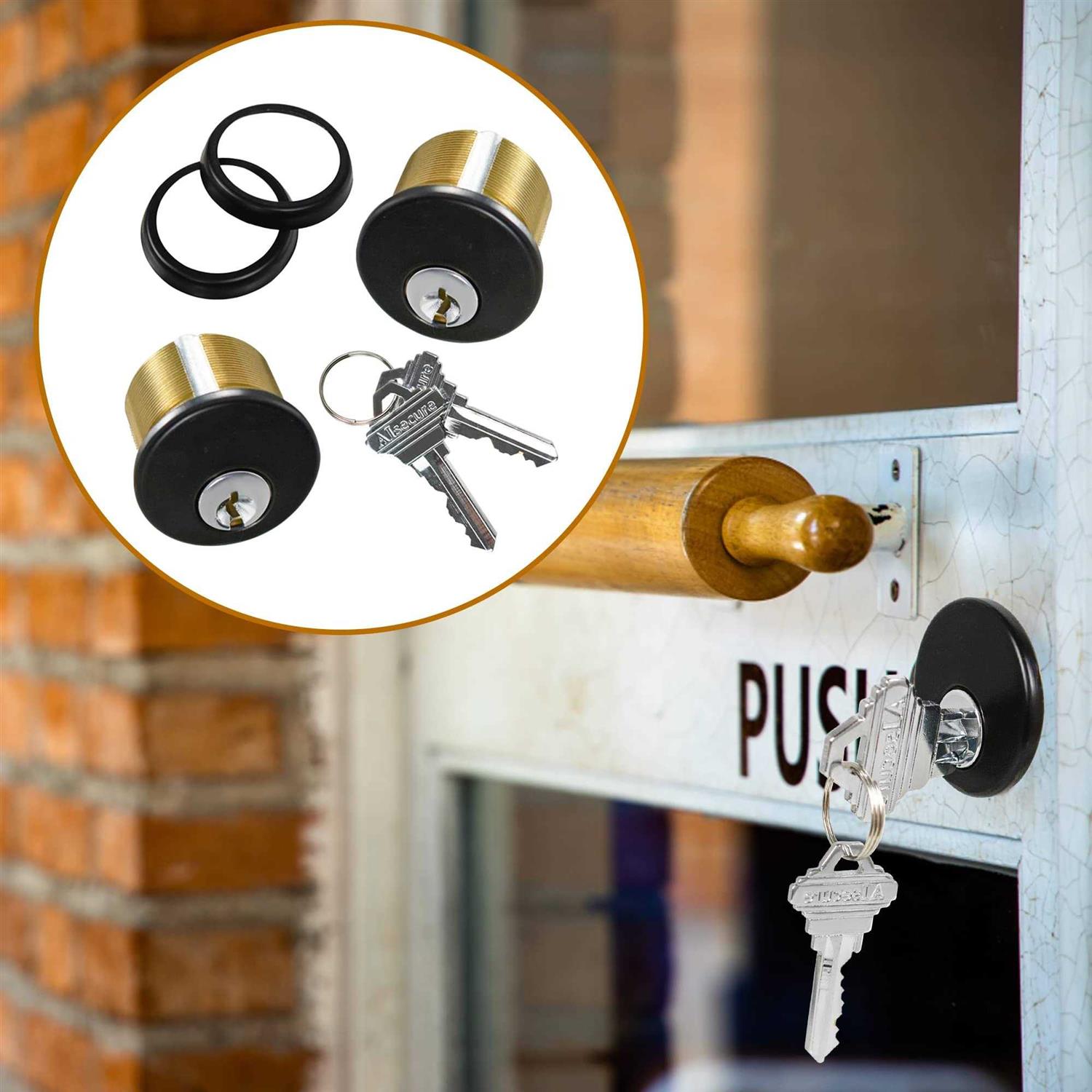 【Premium Quality with Brass 】This mortise door lock cylinder is made of premium solid brass, the interior key cylinder with a chrome finish. 【Sturdy & Anti-Corrosion】The upgraded sturdiness and anti-corrosion feature ensures this mortise lock cylinder is more durable, secure, and strong for long-term use. 【Universally Fit】This door lock cylinder is one of the most common see styles, suitable for most storefront commercial aluminum or zinc alloy doors. 【Size Information】1-Inch body length, including 5/16-inch stamped trim ring. 【Package Includes】Brass Cylinder x 4, Matching SC Keyway Key(keyed alike) x 4, Stamped Trim Ring x 4