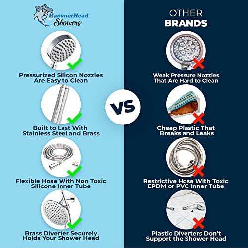 Looking For An All Metal Dual Rain And Hand Held Shower Head Combo? Introducing HammerHead Showers All Metal Dual Shower Head with 8 Inch Rain Shower, Single Function Handshower And 3-Way Shower Arm Diverter.
