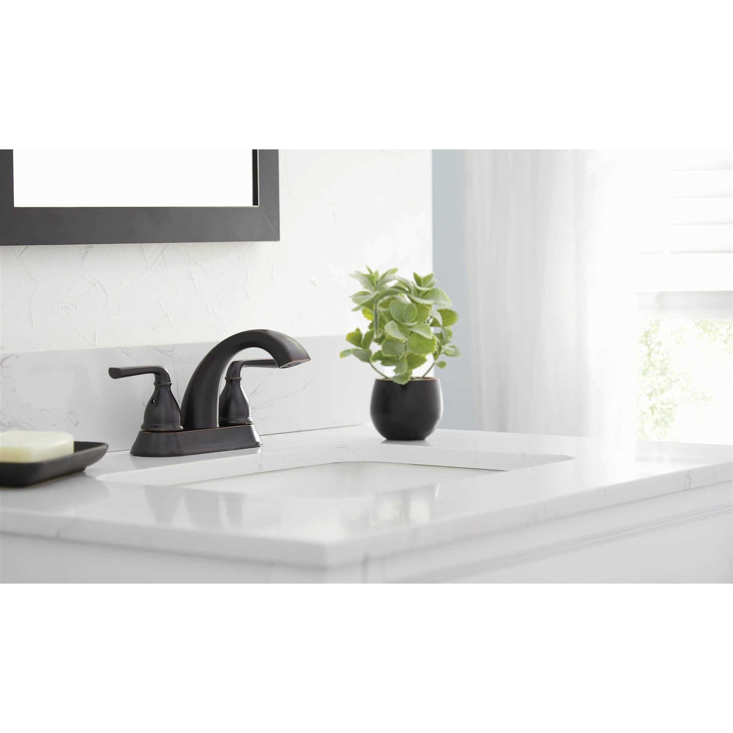 Allen + Roth Reagan Oil Rubbed Bronze 2-Handle 4-in Centerset WaterSense Bathroom Sink Faucet with Drain and Deck Plate | 67123W-622707
