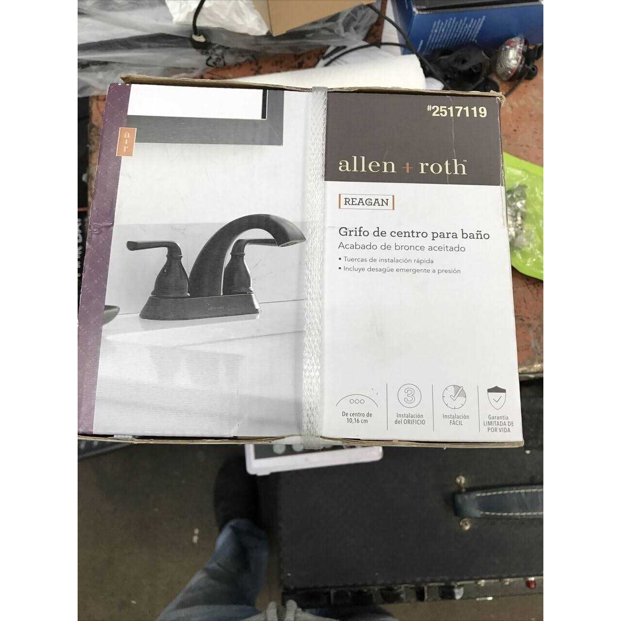 The classic design of the allen + roth Reagan 4-in centerset bathroom faucet compliments a variety of bathroom decors. The faucet is complete with a matching pop-up drain.
