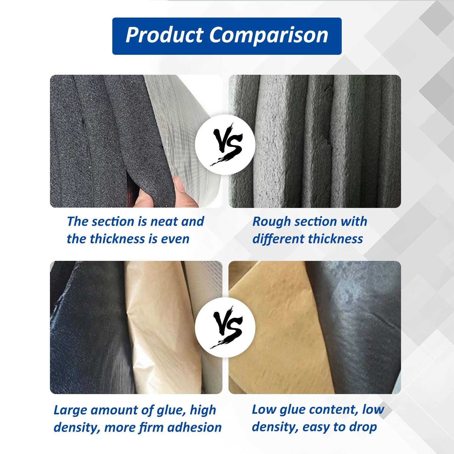 Sound deadening material size: Nominal thickness 394 mils; Total coverage area of 10.8 sqft; Nominal sheet Size 40×40 inches. working Temperature Range: -40°F ~ 300°F Heat Insulation and Vibration Deadener: Effectively blocks 98% of radiant heat transfer. Sound deadening mat is a very versatile insulation material with excellent thermal barrier properties that will block engine, exhaust, & summer heat, ensuring your vehicle stays cooler in the summer and warmer in the winter, making your ride more pleasant! Automotive self-adhesive insulation is a waterproof lightweight thermal deadener with a highly compressible closed-cell foam formulation, it absolutely doesn’t absorb moisture and has no odor The sound dampening mat can be applied to external partitions, firewalls, hoods, engine compartments, engine compartments, trunks, wheel arches, body panels, load floors, and internal partitions under the seat floor. The sound dampening material comes in handy size sheets which make it easier in terms of the cutting and installation process and it’s flexible which makes it easy to install with or without a roller. 394 mil (10 mm) Car Sound Deadening & Heat Insulation Closed Cell Foam – PE Foam Sound Deadener Strong sound insulation and absorption performance, heat insulation, Reducing energy consumption with the strong performance of heat insulation Strong self-viscous performance