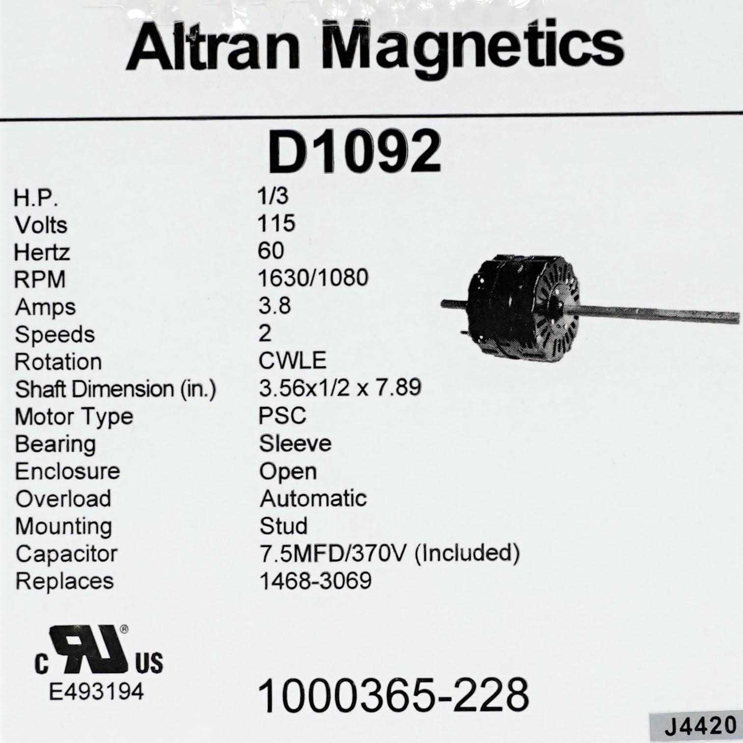 Be the first to review “Altran 1/3 HP 115 Volt 1625 RPM 2-Speed Coleman RV Air Conditioner Motor Replaces Fasco D1092”